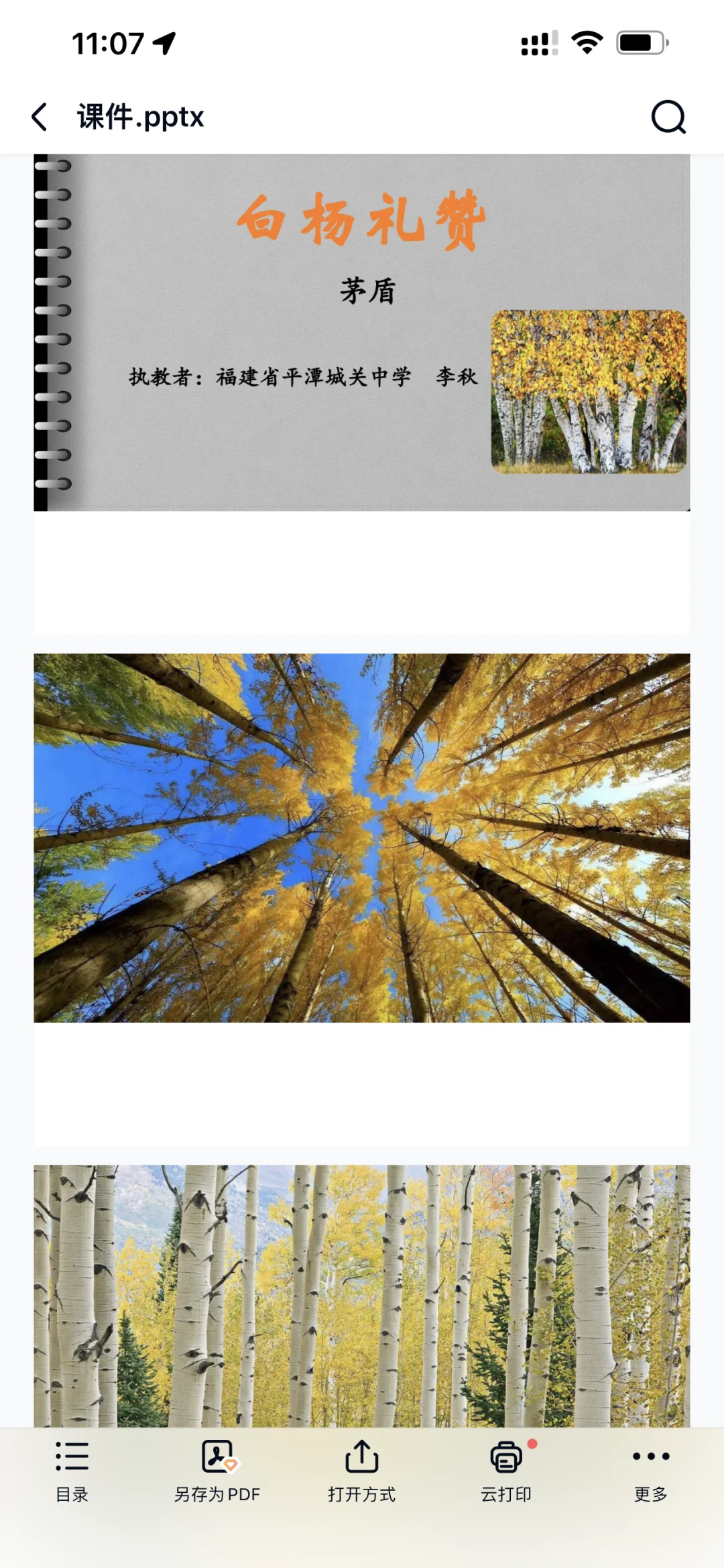 2.欣赏白杨树的图片,感知白杨树的特点