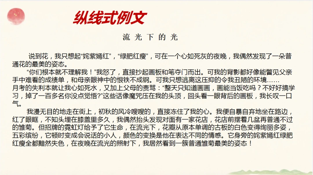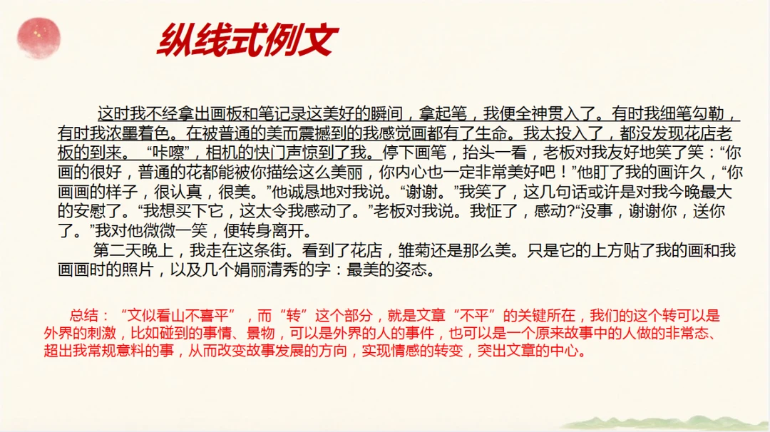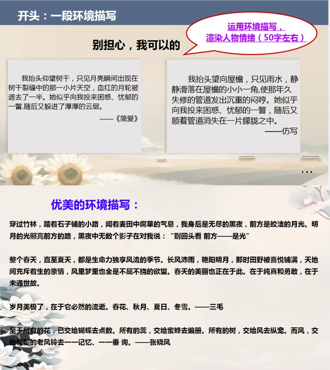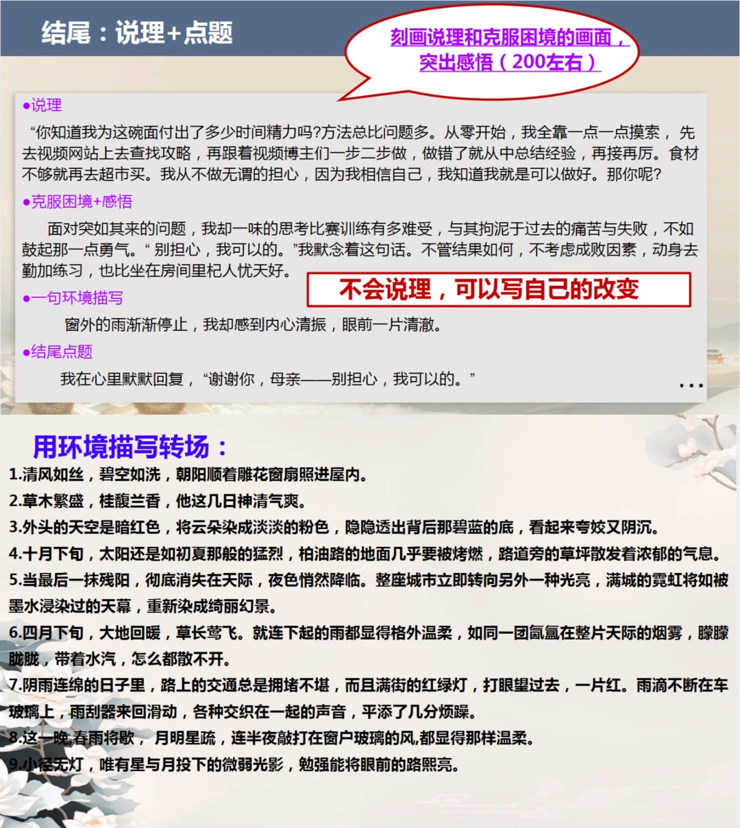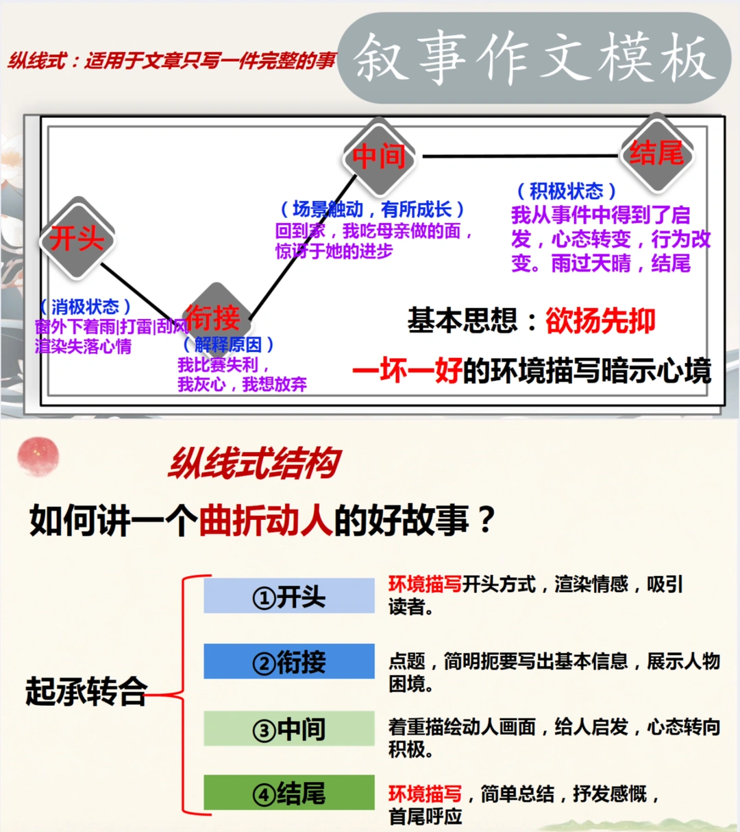 把起承转合式结构简化了一点,怕学生搞不懂,主要写作思路是欲扬先抑➕两处以上环境描写!