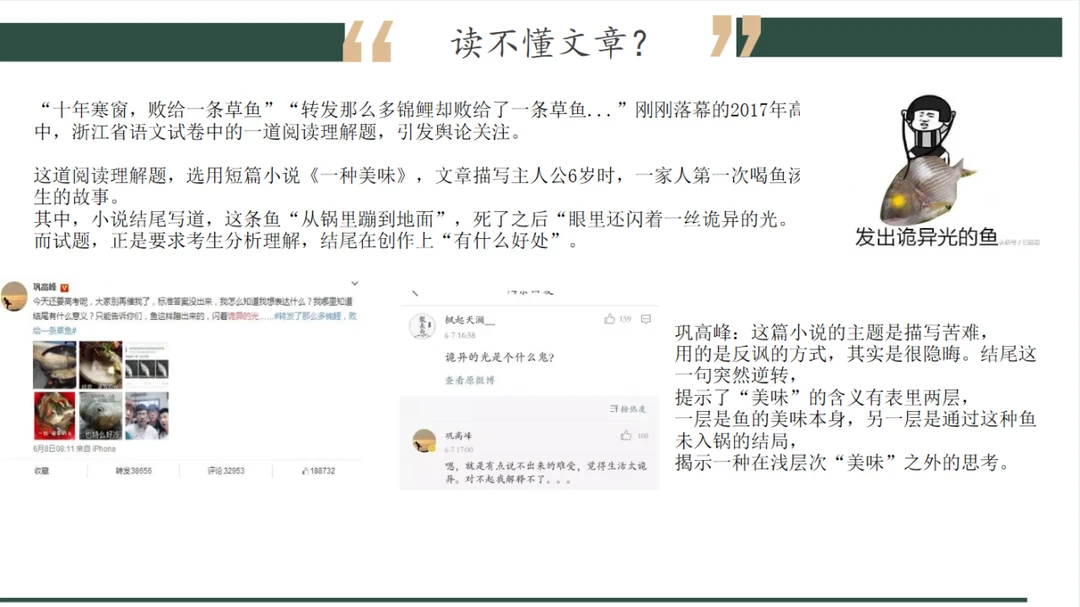 记叙文阅读复习,模块太多,复习起来太困难啦[失望R]资料整理起来人都不好了,你说学生怎么能学得清楚明白。这是一节记叙文阅读复习课的总括,说清楚后续复习思路。 👋调侃记叙文阅读复习就像盘古开天地 👋文章是什么:对世界的描述 👋读懂文章要有读者意识,作者意识,文本意识 👋考情 👋考查题型,题型判断 👋真题练习 之后会按照题型来更新