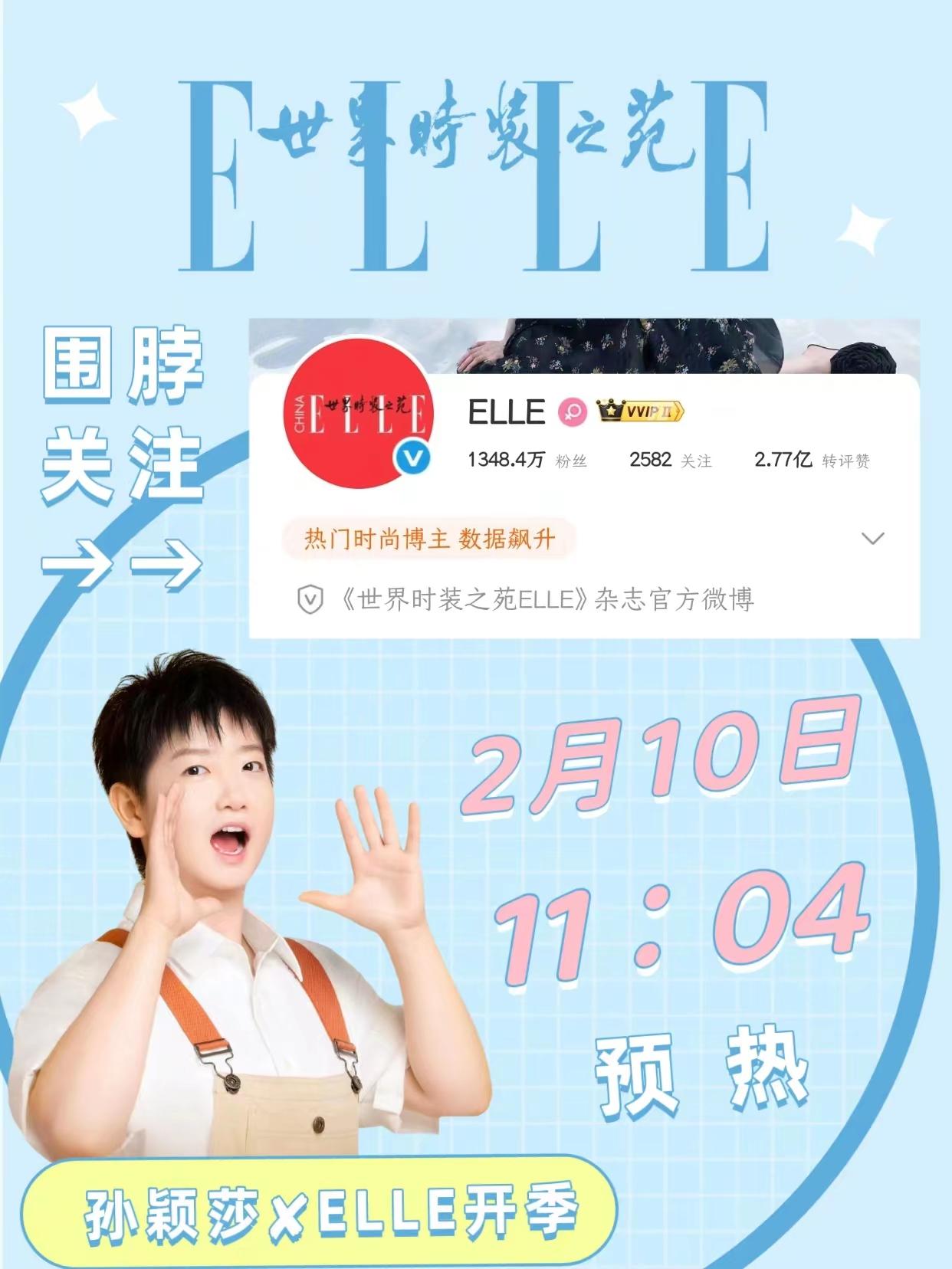 今天elle杂志预热,我们莎莎二登elle杂志,还是开季刊,并且ELLE好久从没换过头像 了,因为莎莎还更换了头像,由此可见这含金量,今天我们一起蹲哦孙颖莎