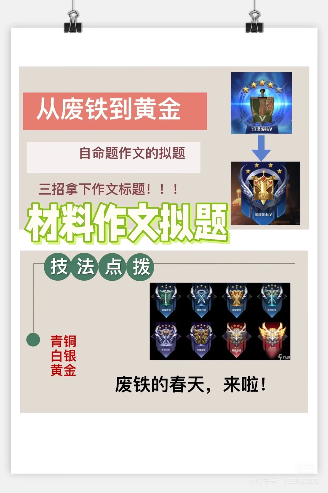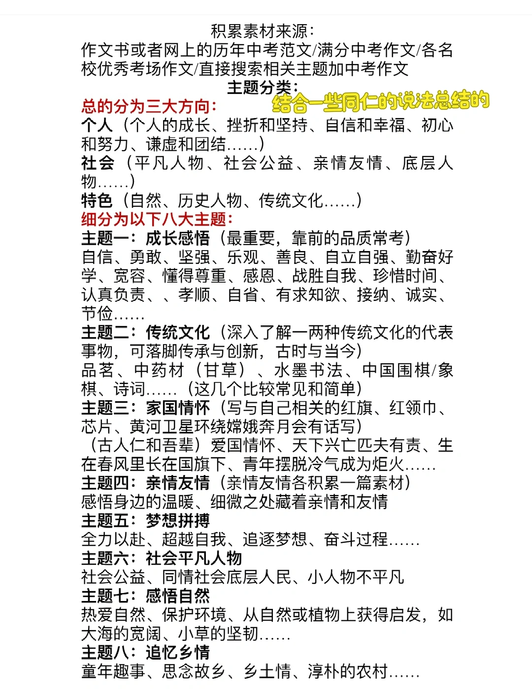 2️⃣九下:复习阶段直接进行专题作文课,分为审题、拟题、素材、结构、语言、开头、结尾等板块讲解,做了作文专题资料,可以参考下,最好早一点复习作文,留出时间练习巩固。