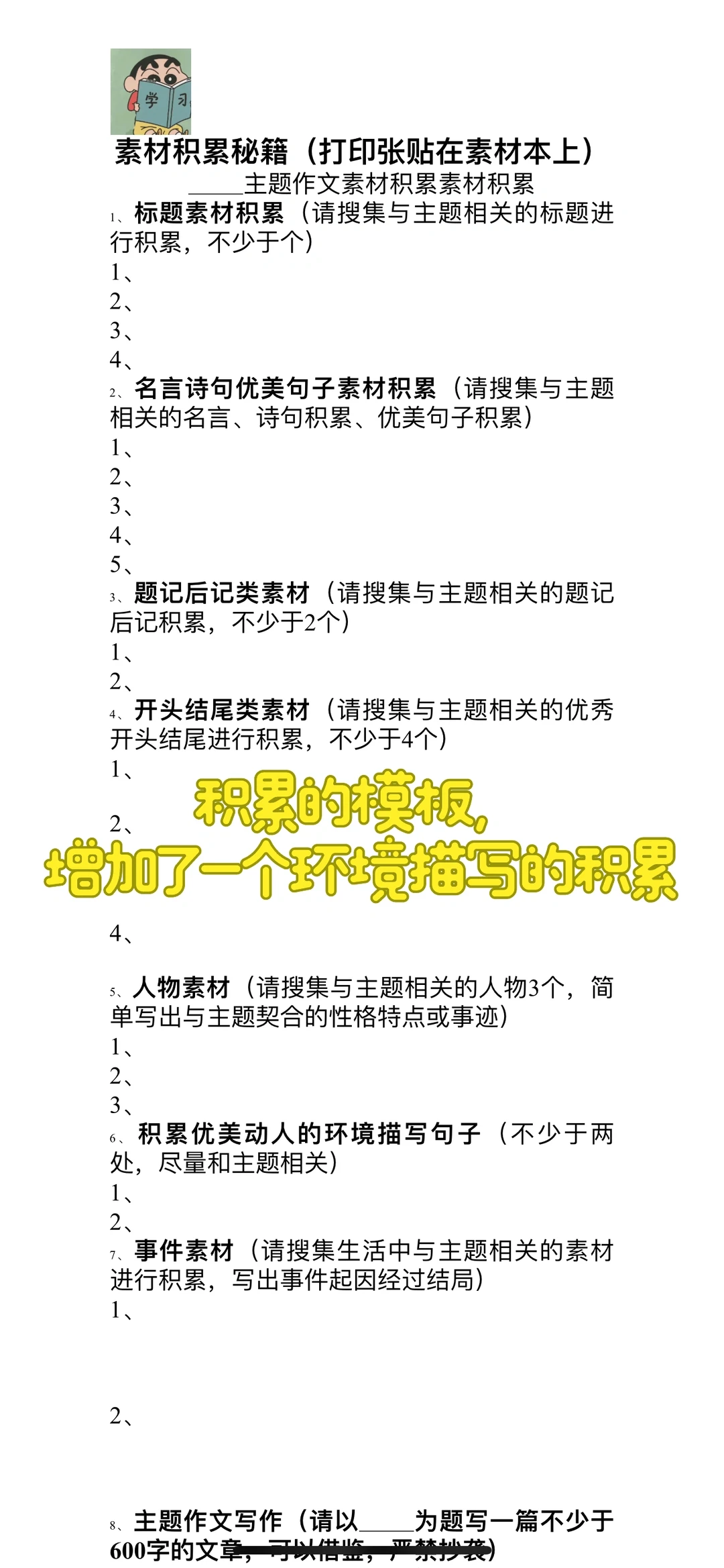 告诉学生积累素材来源: