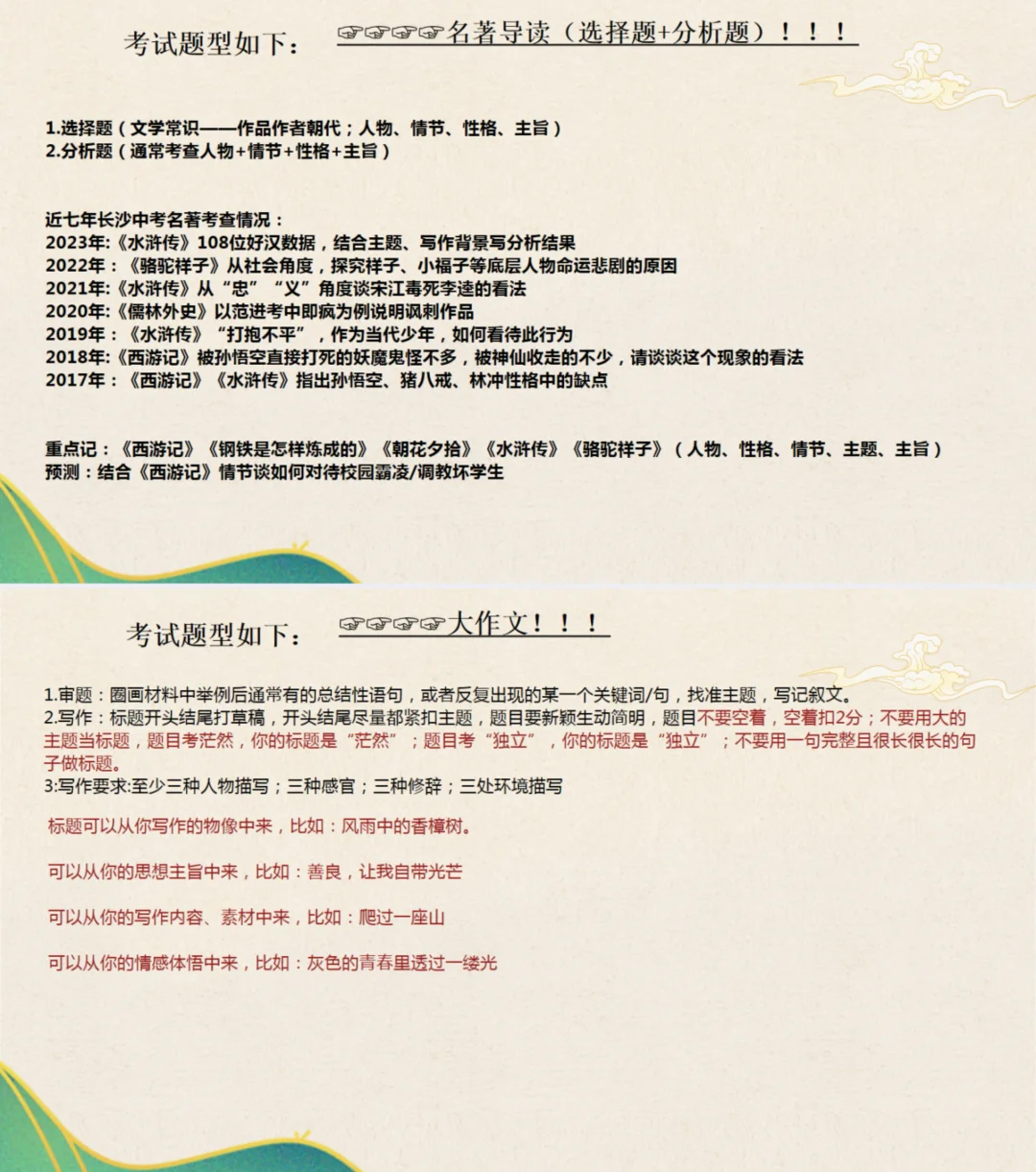 中考语文临门一脚!答题事项!全题型!