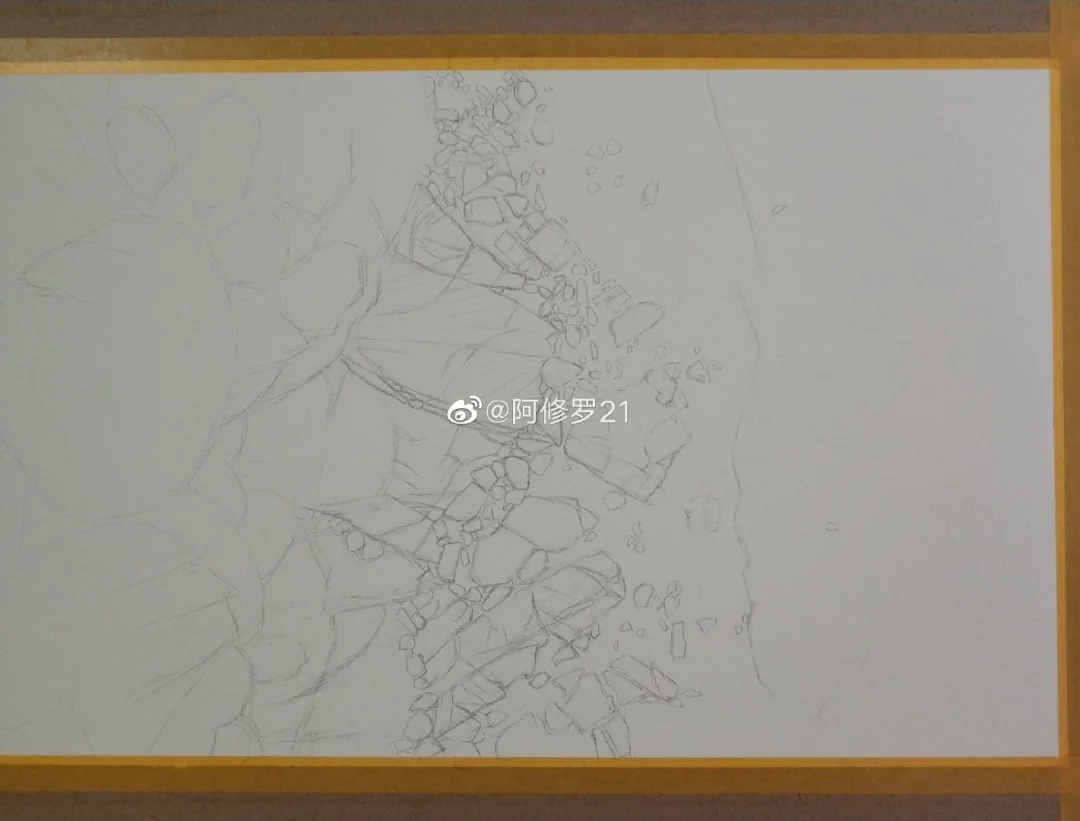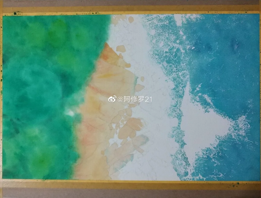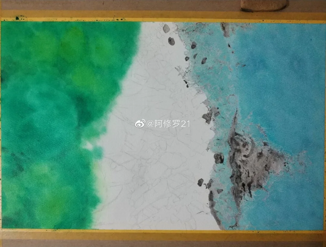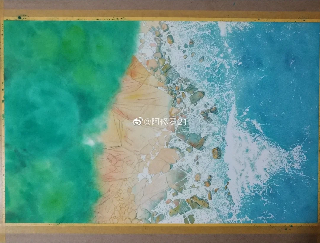 每次画四开觉得好累啊。获多福粗纹……的背面。颜料是mg管子和小部分荷尔拜因块状。