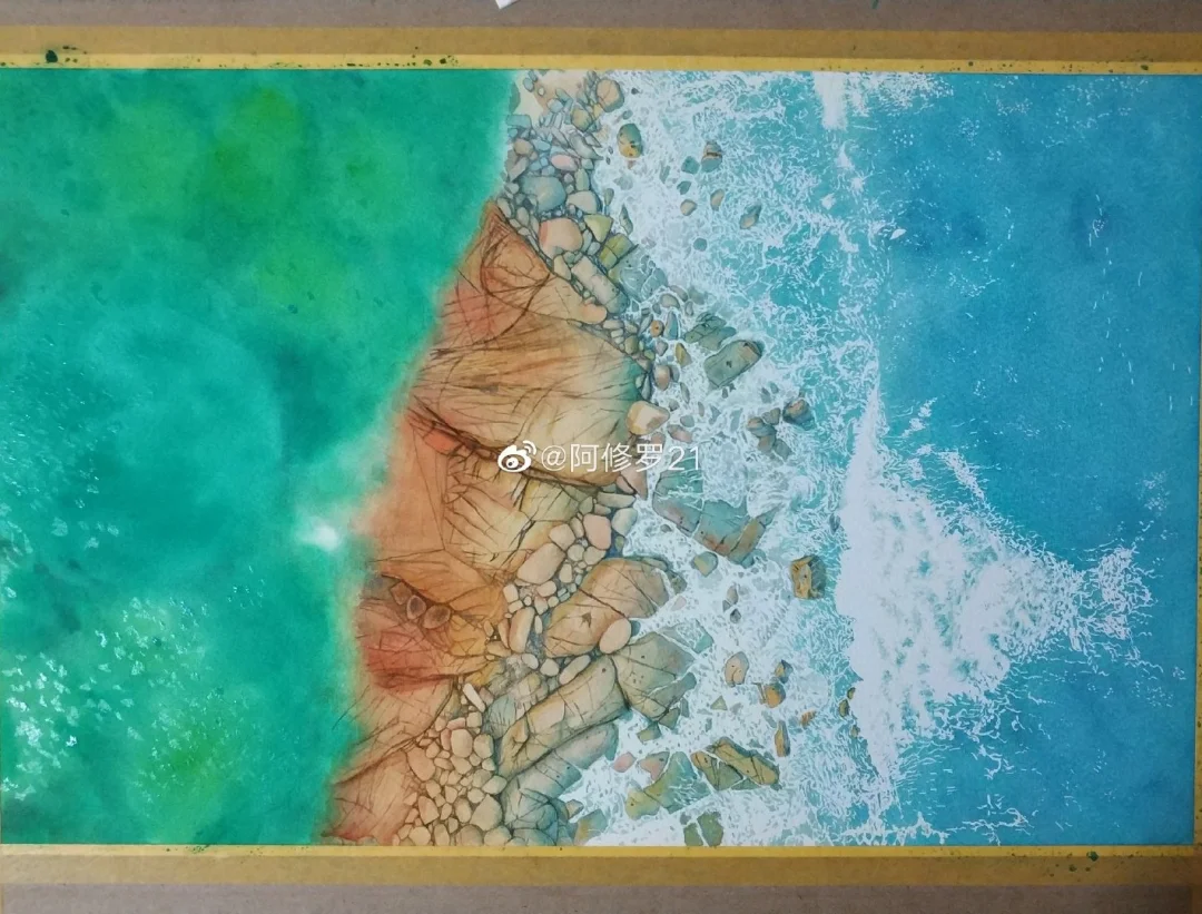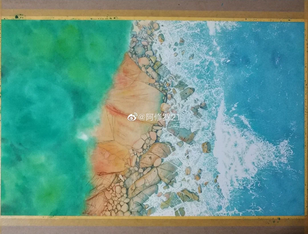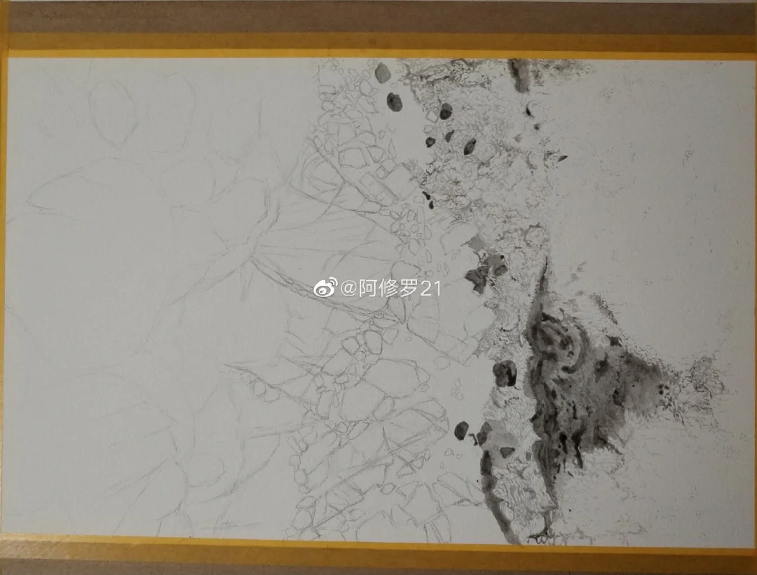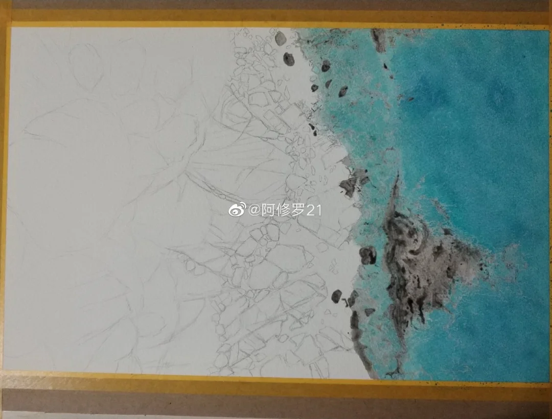 每次画四开觉得好累啊。获多福粗纹……的背面。颜料是mg管子和小部分荷尔拜因块状。