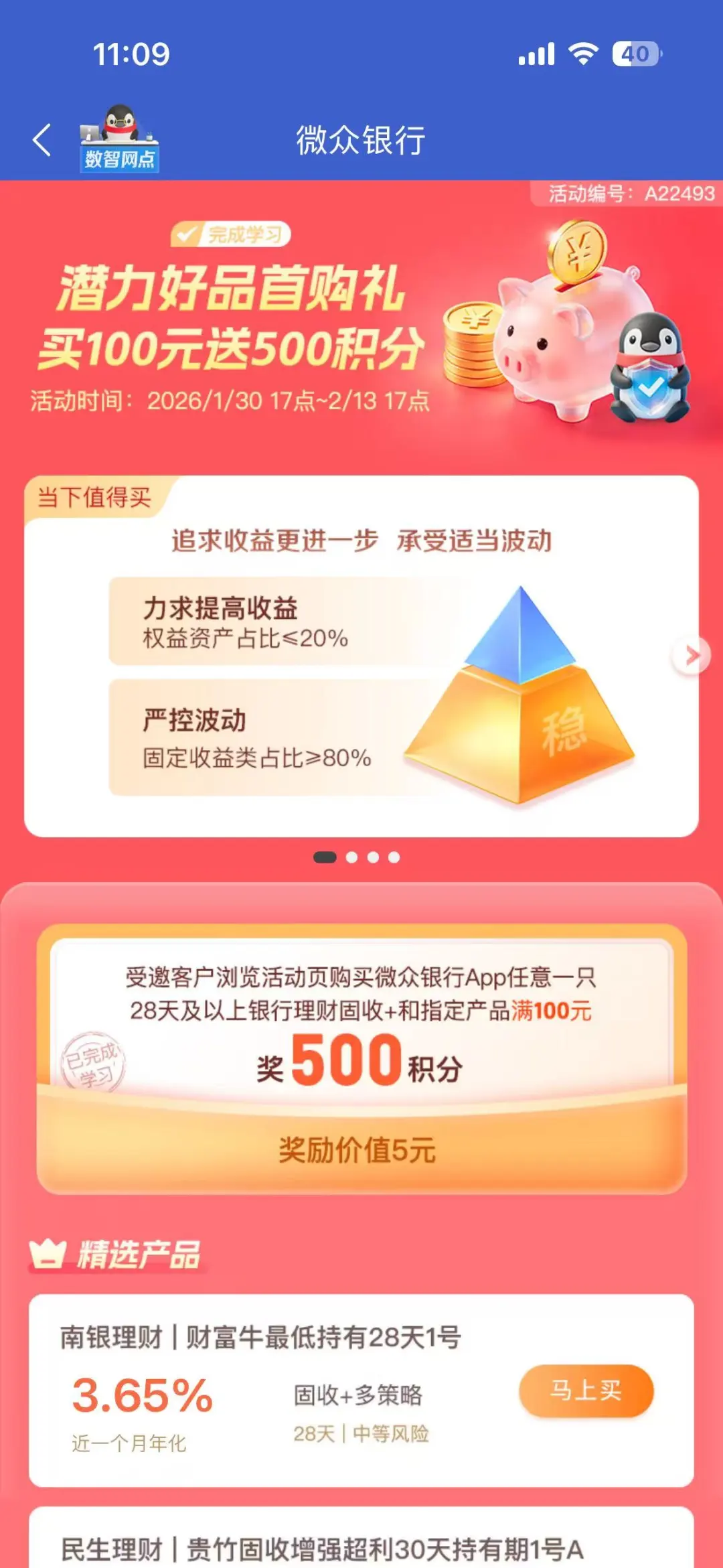 ☞恰好最近有固收+理财体验活动,买入100即得5元积分,很适合试试水!活动周五结束,抓紧赚钱机会~