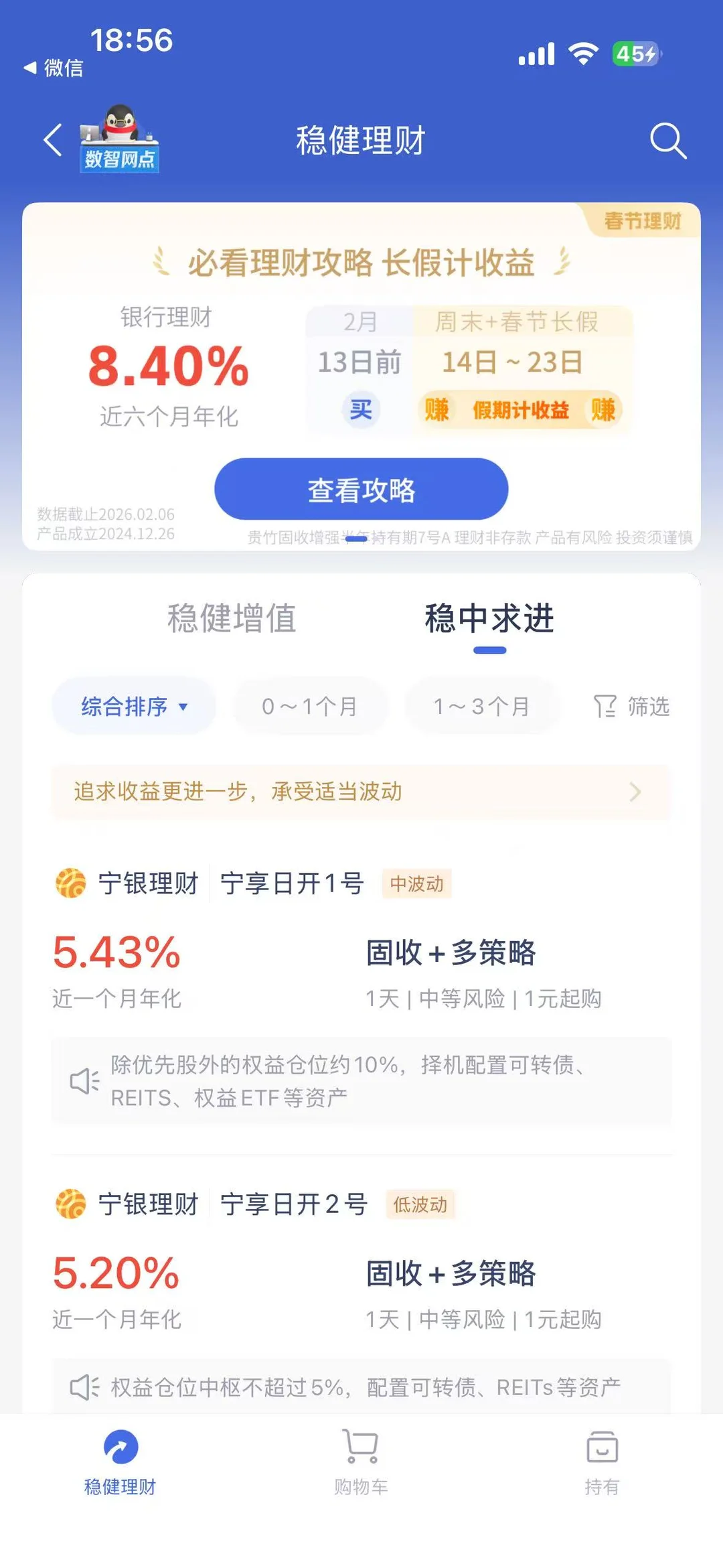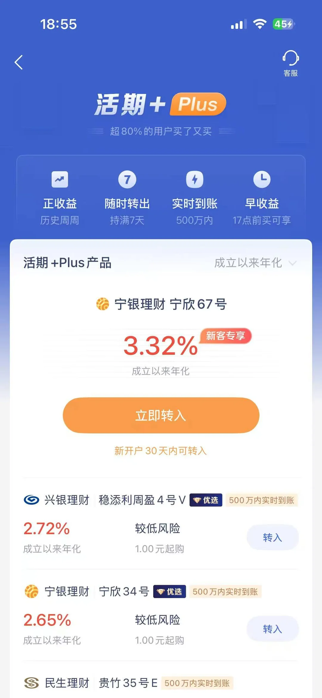 🌟如果想要更好收益可以选择固收+理财,近一个月年化3%-5%,多期限产品可选择;底层有≤20%的权益类资产增厚收益,也因此产品波动会大于活期+plus,更适合追求收益且可以承受一定波动的朋友。