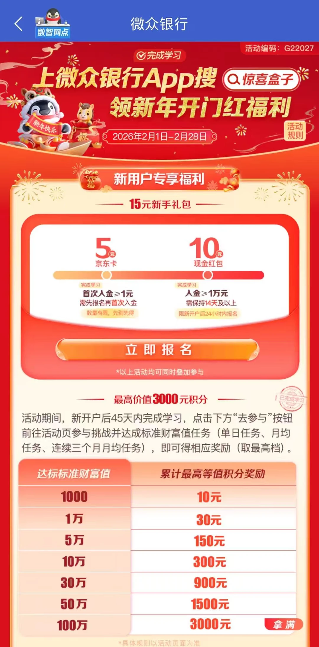 ② 新年开门红:资产达标最高拿3000元积分 🏆|1万元得30元积分,5万元也有 150元积分!
