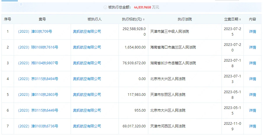 不过,即便胜诉了,奥凯航空也是很难还钱的,所以只有申请强制执行。
