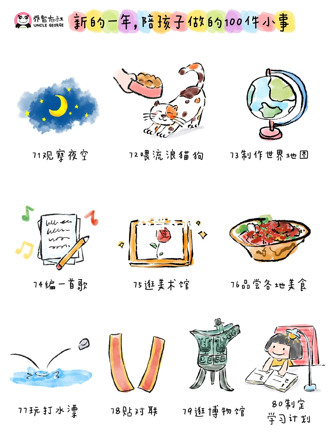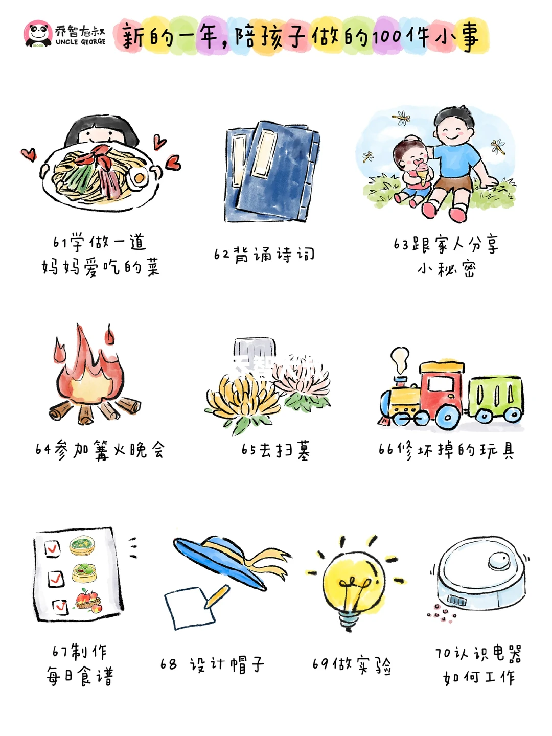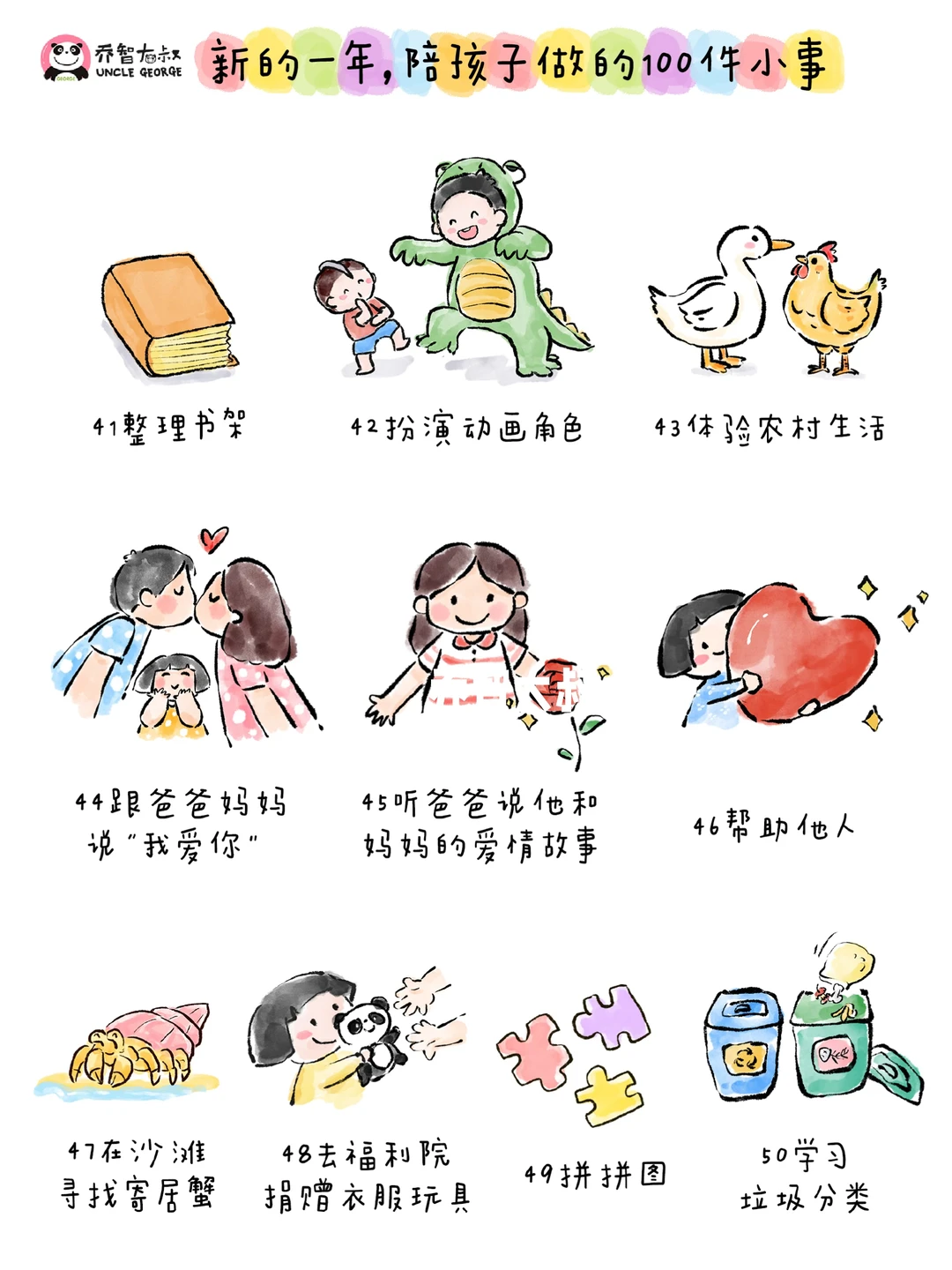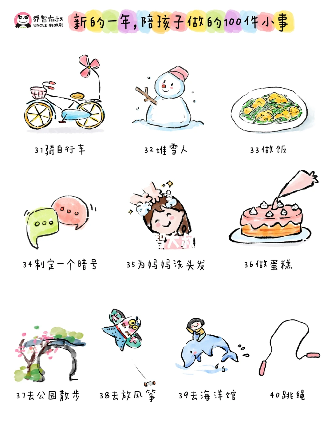 马年的亲子仪式感 就藏在这些小事里 不用惊天动地,只要用心陪伴: 一起读书、一起跑步、一起堆雪人、一起做蛋糕……每一件都是成长里闪闪发光的回忆。 把这张清单打印出来 和孩子一起打勾打卡吧📝 让爱和陪伴 填满一整年的温柔时光❤️