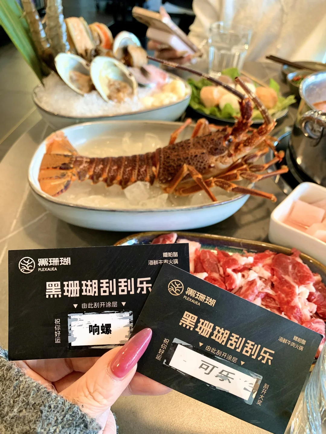 我和朋友很幸运的抽到了可乐+响螺(店内498一只)今天真的是太幸运了!