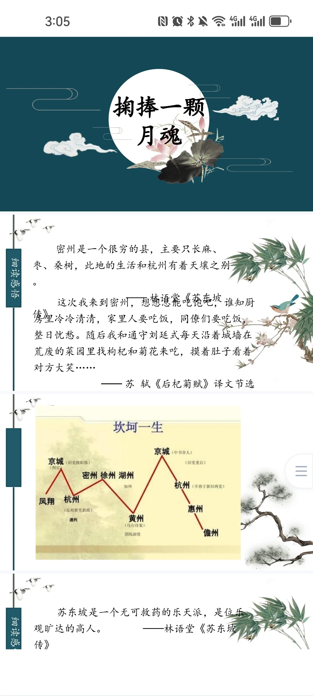 在我们心中,苏轼似乎一直都是一个文化符号,是文学艺术上的一座高峰。然而,对于九百多年前的他而言,最主要的社会角色无论是官场上还是生活中踽踽独行的孤独者。苏轼饱经仕途坎坷,他一生中的三位妻子也都因病离他而去,生活的磨难并没有让苏轼变得尖酸刻薄,反而更趋温和,更加旷达。这是做人的境界!读懂这份旷达的人会喜欢上苏轼,读懂这旷达背后苍凉的人,才配爱上苏轼。这份苍凉让旷达更为可贵!