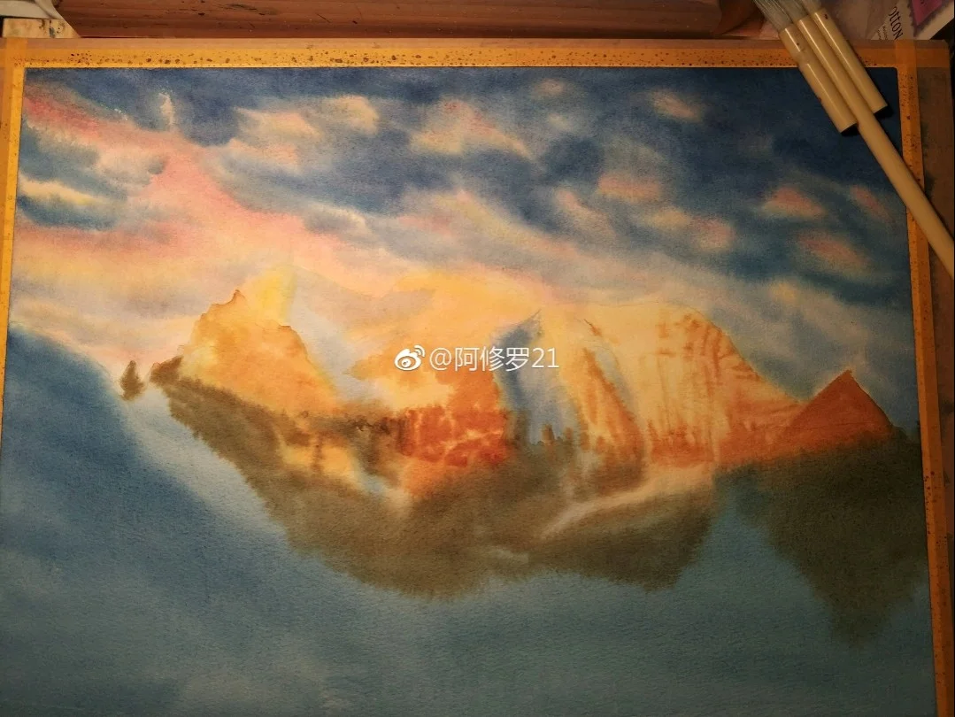 水彩。稻城亚丁仙乃日。