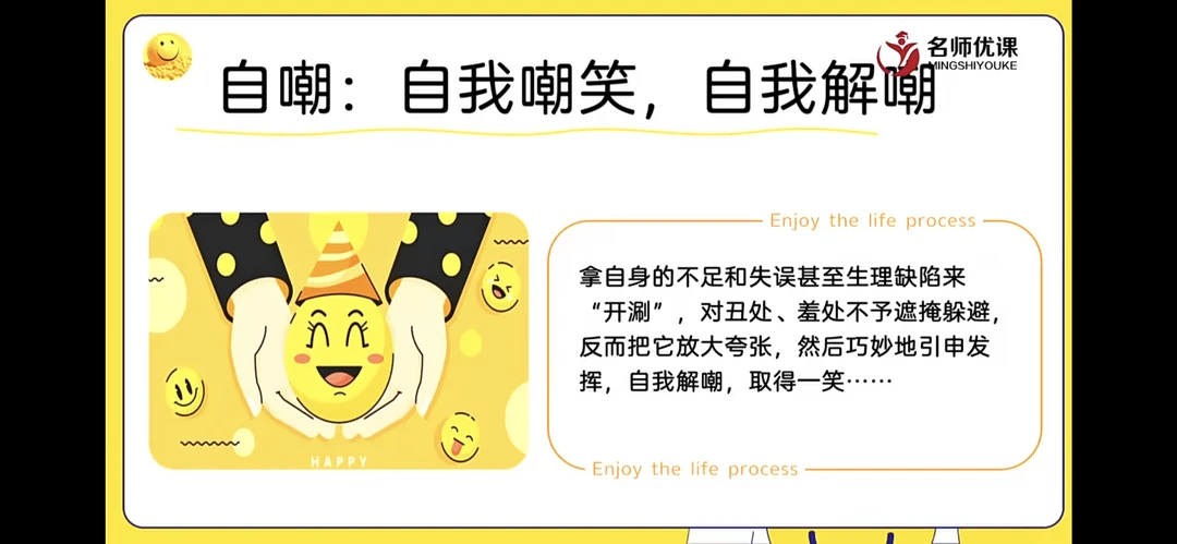 [玫瑰R]资料丰富详实,从录制学生朗诵《我爱学习》的视频到脱口秀视频,再到历代问人自嘲,都能给学生启发。