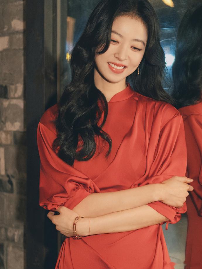 周雨彤好大气的美 周雨彤这身春晚造型真的把大气美诠释到位了,缎面红裙剪裁利落,褶皱垂坠衬出身姿。复古波浪慵懒利落,神态从容清冷,每一处都在发光。