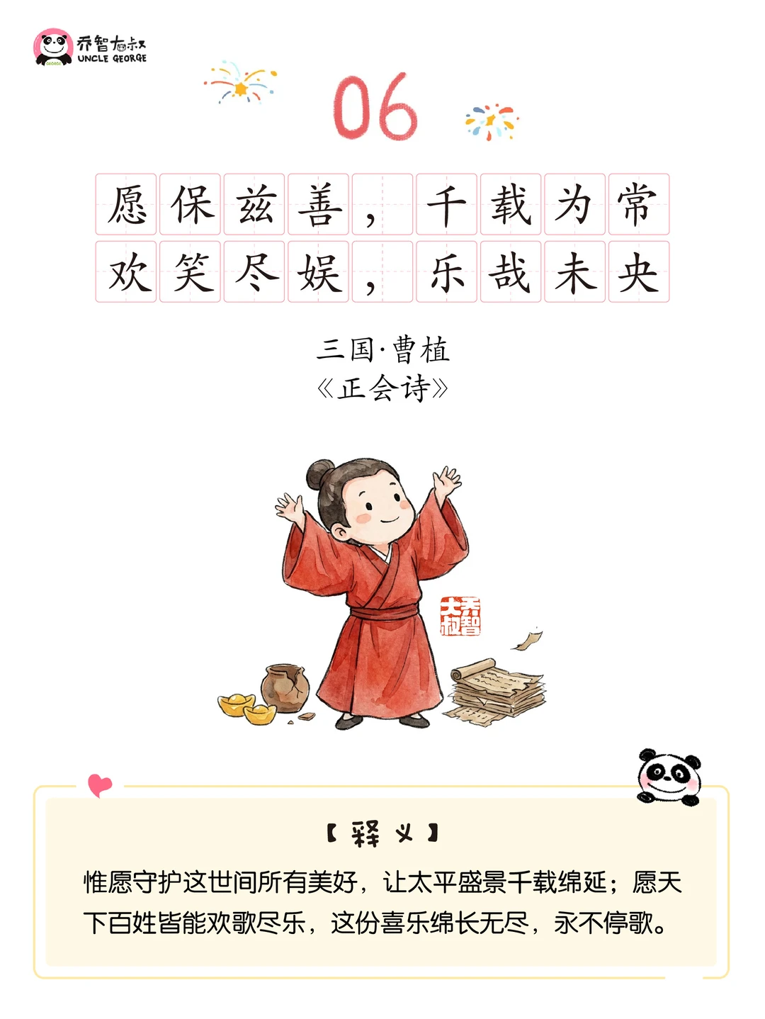 在这个新年[烟花R] 让我们一起回味 这些美好的诗句[鼓掌R] 感受古人的智慧与情感 把这份美好传递下去[庆祝R] 让新年的祝福[福R] 跨越时空 温暖每一个心灵[红色心形R]