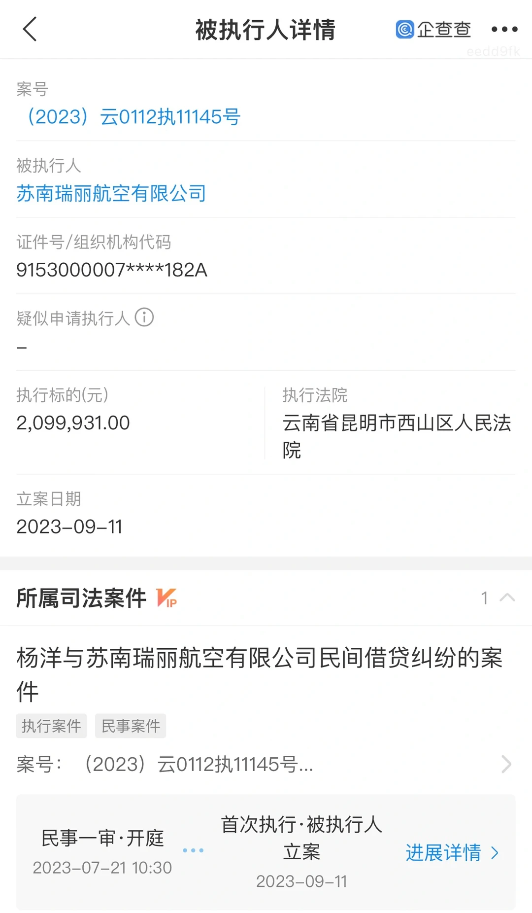 最近,瑞丽航空又被法院强制执行了。