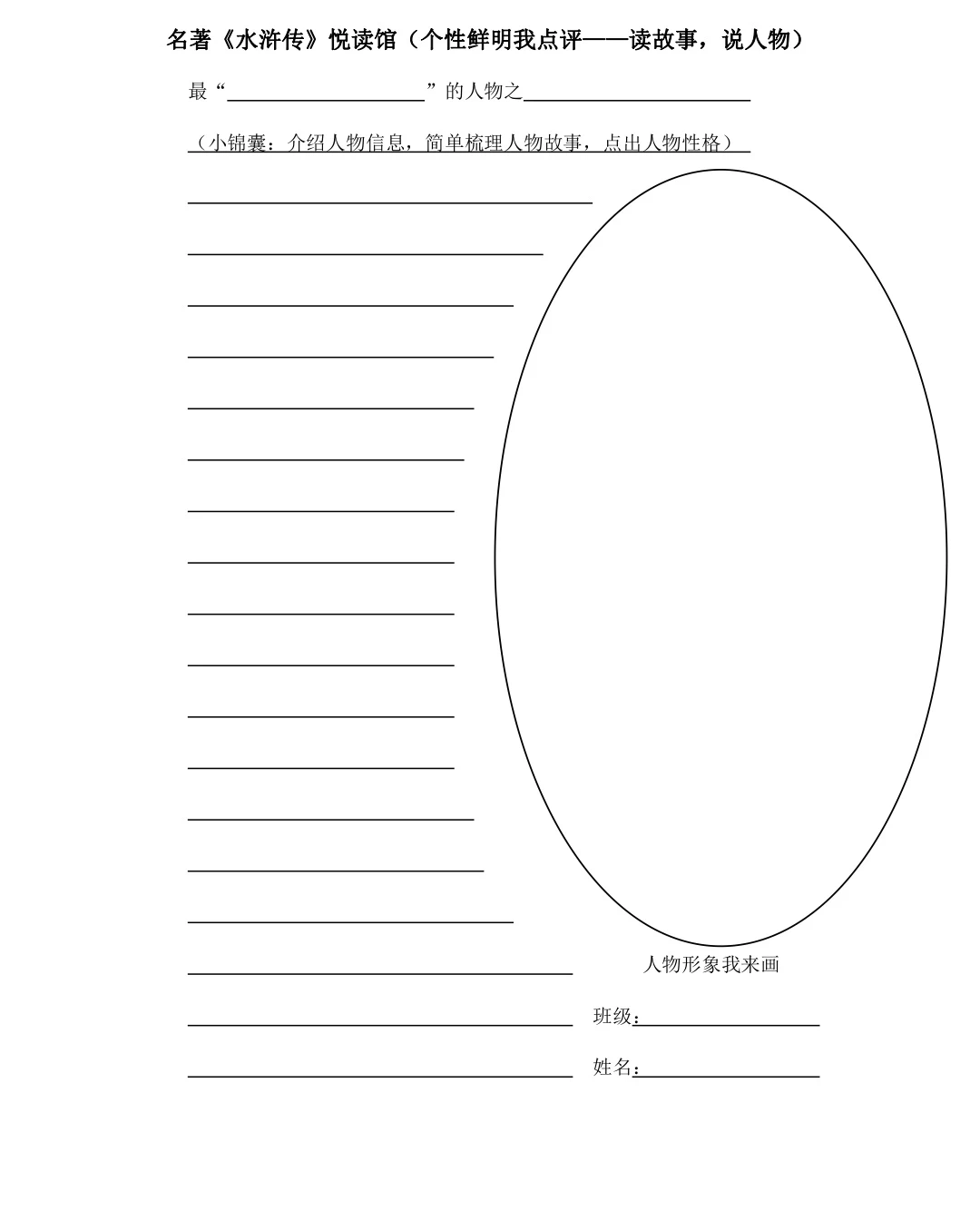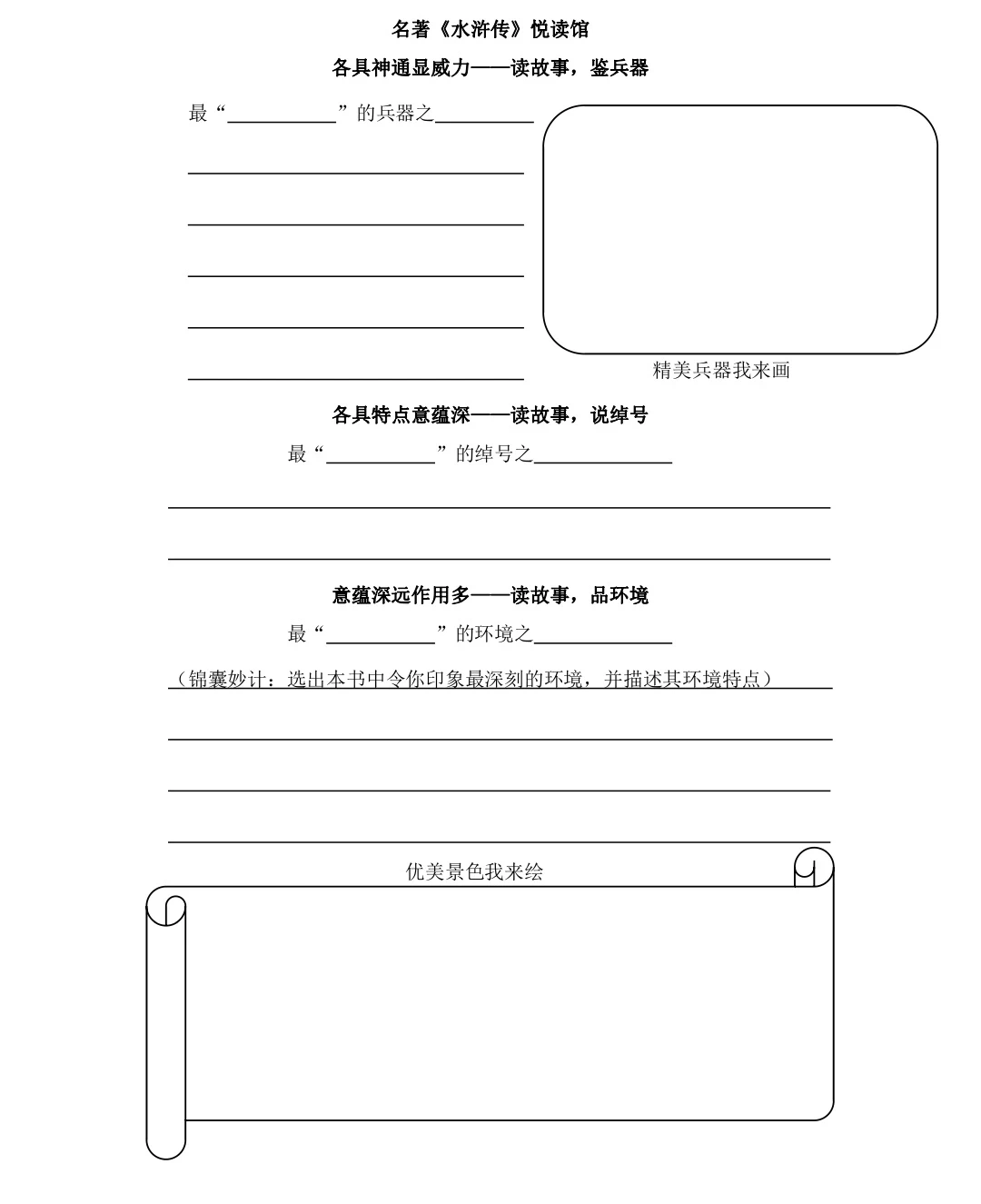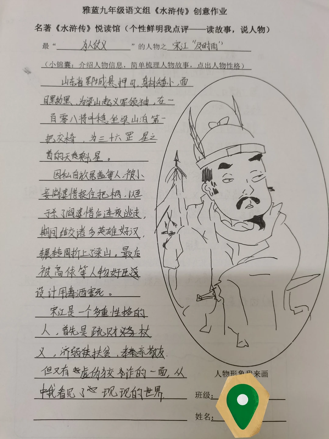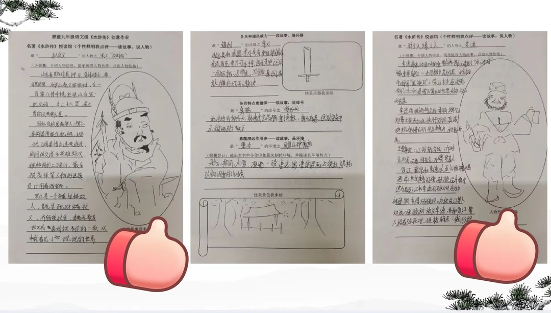 《水浒传》创意作业,包括人物、绰号、兵器、环境