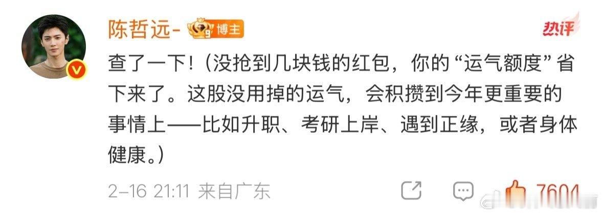 好温柔 哲远人真的好好🥹陈哲远 你的运气额度省下来了