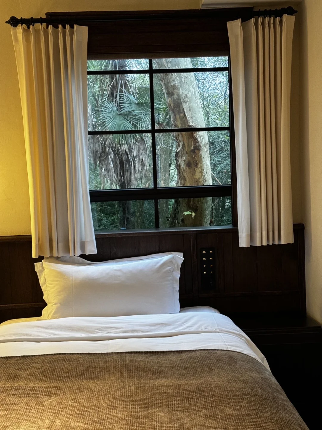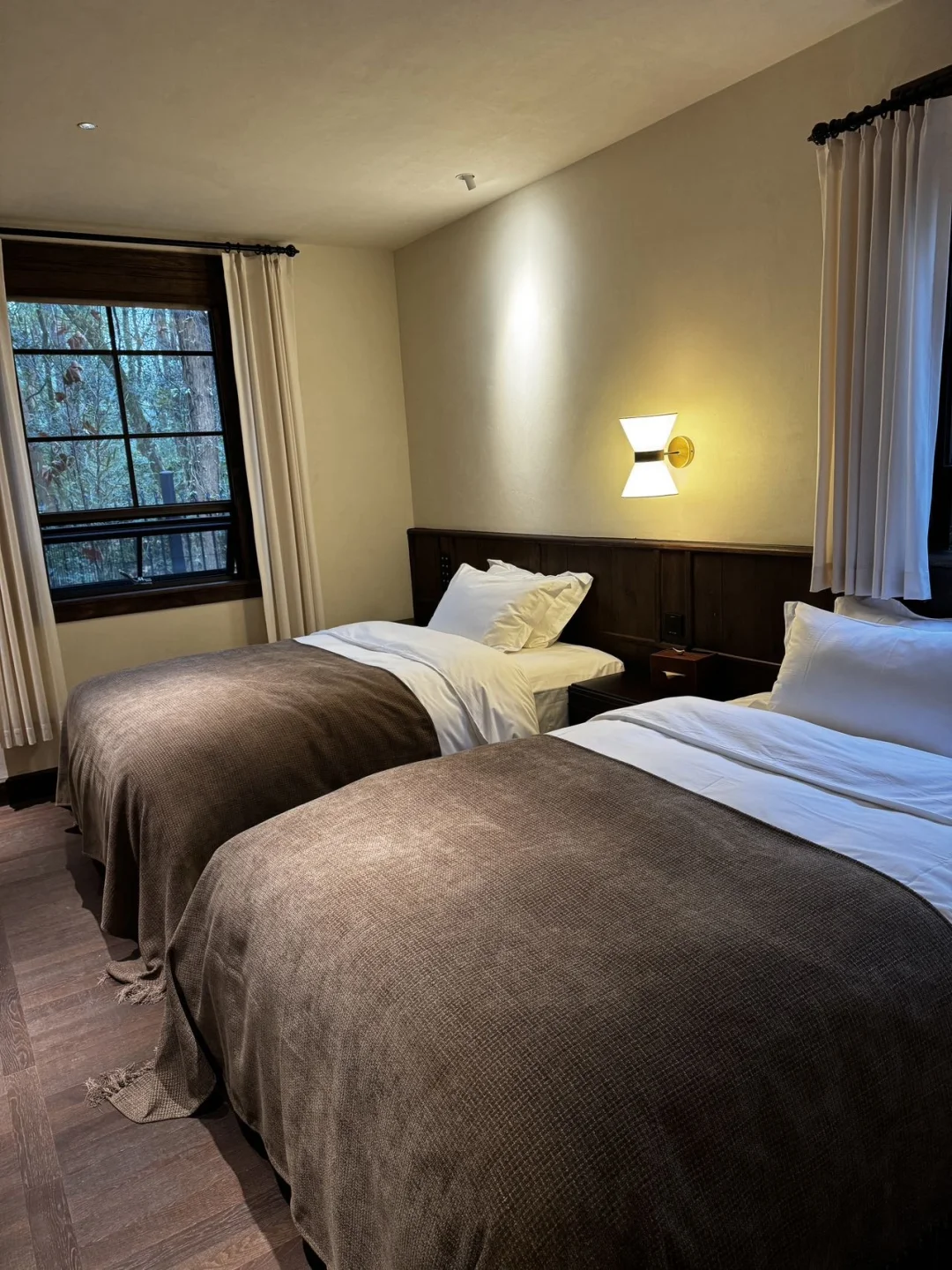 真的太舒服了!后悔没有早点住!行程3天,最后一天安排住在这里,过来真的美呆了……姐妹两个人真的后悔死了,就应该第一晚住这里的,真的超出片!整个酒店就藏身在森林公园里面,早晨各种鸟啼鸣叫在窗外,有种恍然若世的感觉,整个酒店风格是以几栋民国小别墅组成,房间特别古朴,英式主题,房间配置特别好,常开式地暖四季如春,我们住的阁楼房上下的感觉就超美!入夜四处虫鸣鸟,静悄悄的,睡觉特别舒服的呢!