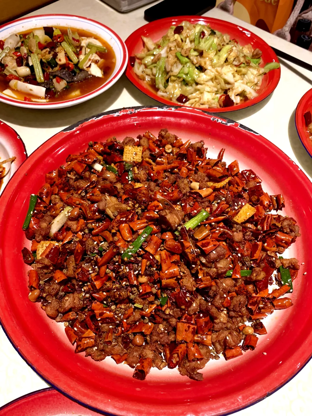🍃人气辣子鸡:焦香酥脆、麻辣入味,鸡肉紧实有嚼劲,越嚼越香。