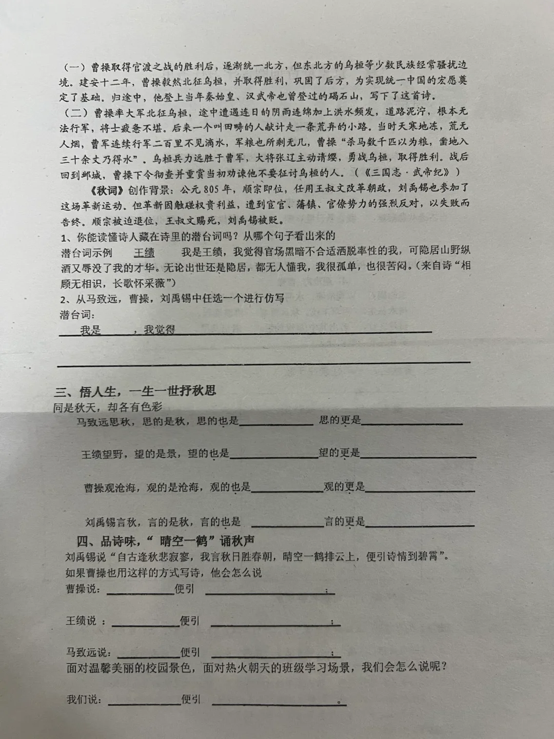 2.从马致远,曹操,刘禹锡(集合诗人背景)中任选一个进行仿写