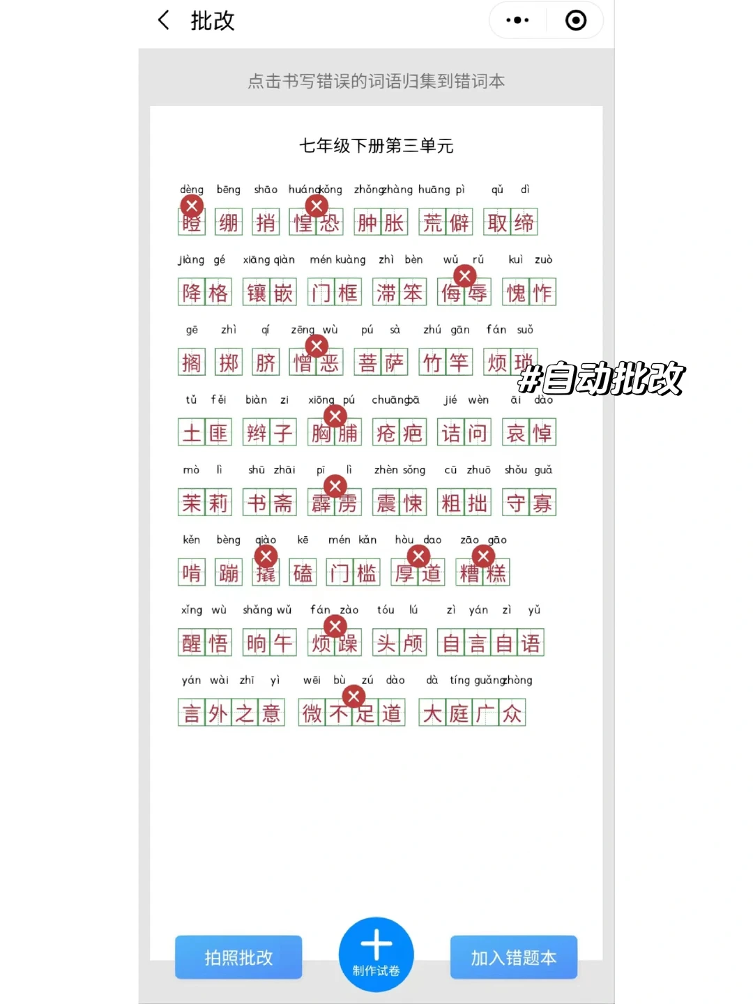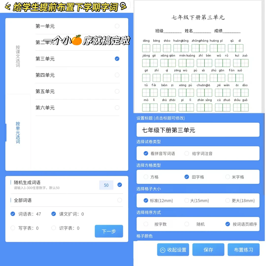 👉我每次给学生按课或是按单元选好字词,选好格式,在青檬语文里十几秒就可以生成字词练习了👏假期可以将文档直接转到班级群,让家长打印下来给孩子在家练习,孩子做好了,家长可以直接在青檬语文里进行拍照批改,或是对照着我发的答案手动批改,都是可以的