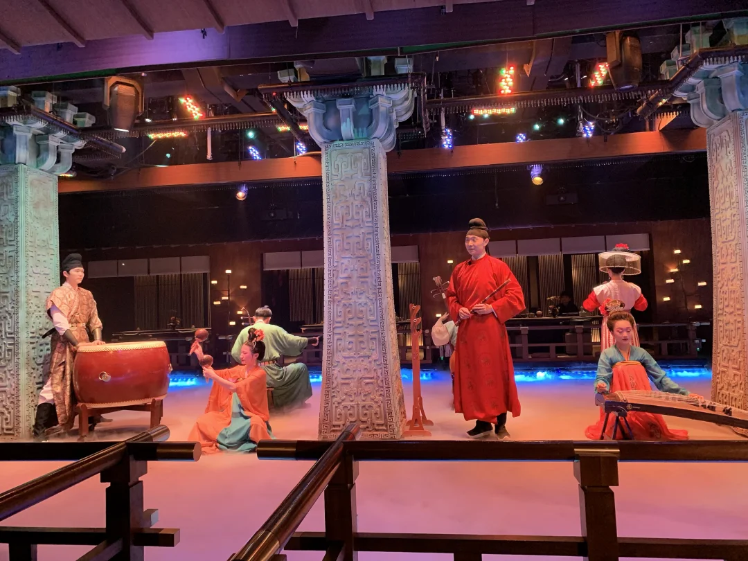 数百人的演出团队,丝竹悦耳无嘈杂,边品珍馐边赏雅韵,沉浸式氛围拉满!