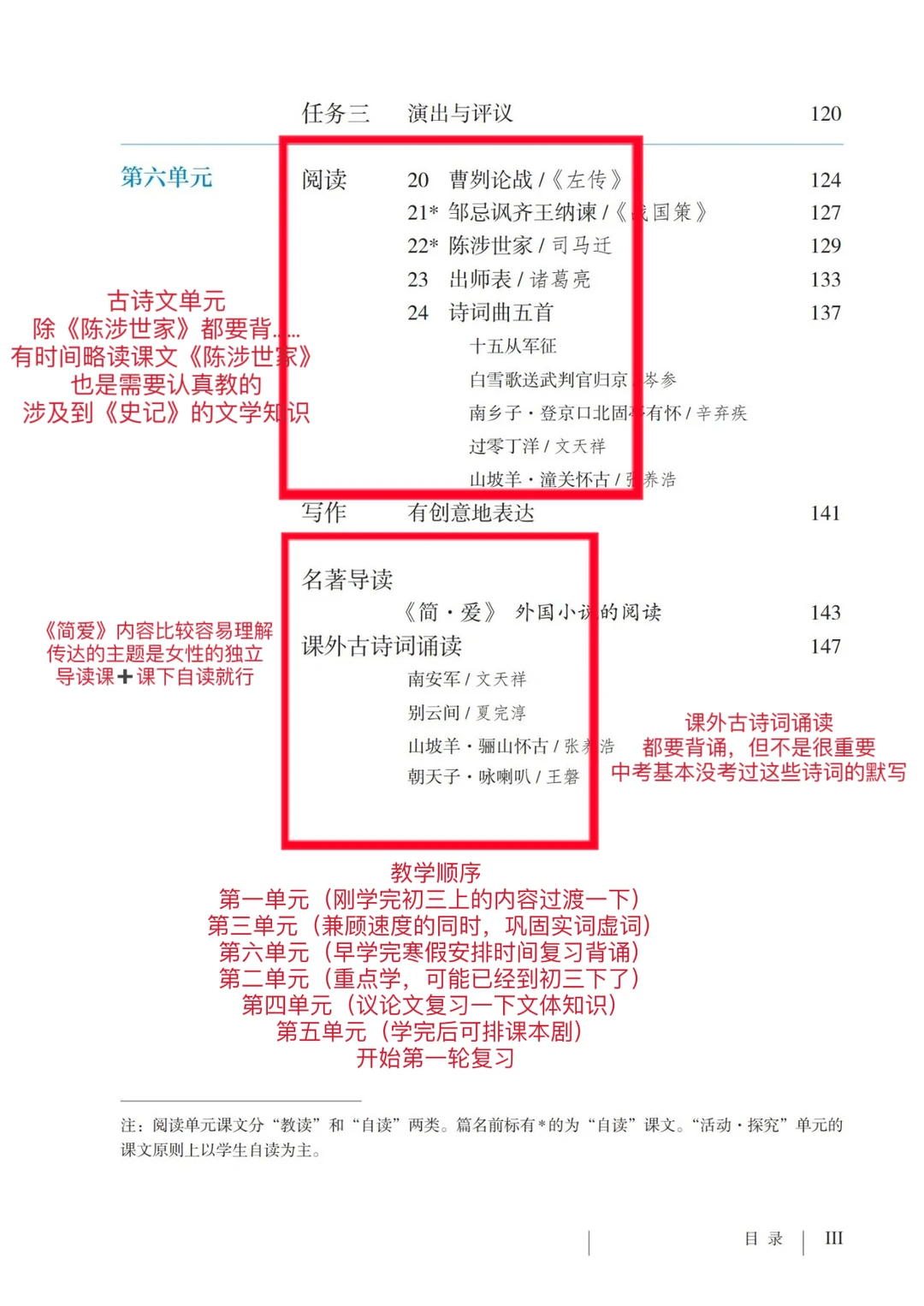 注:除起始年级,其他年级都是用老教材,所以这届初三还是用老教材