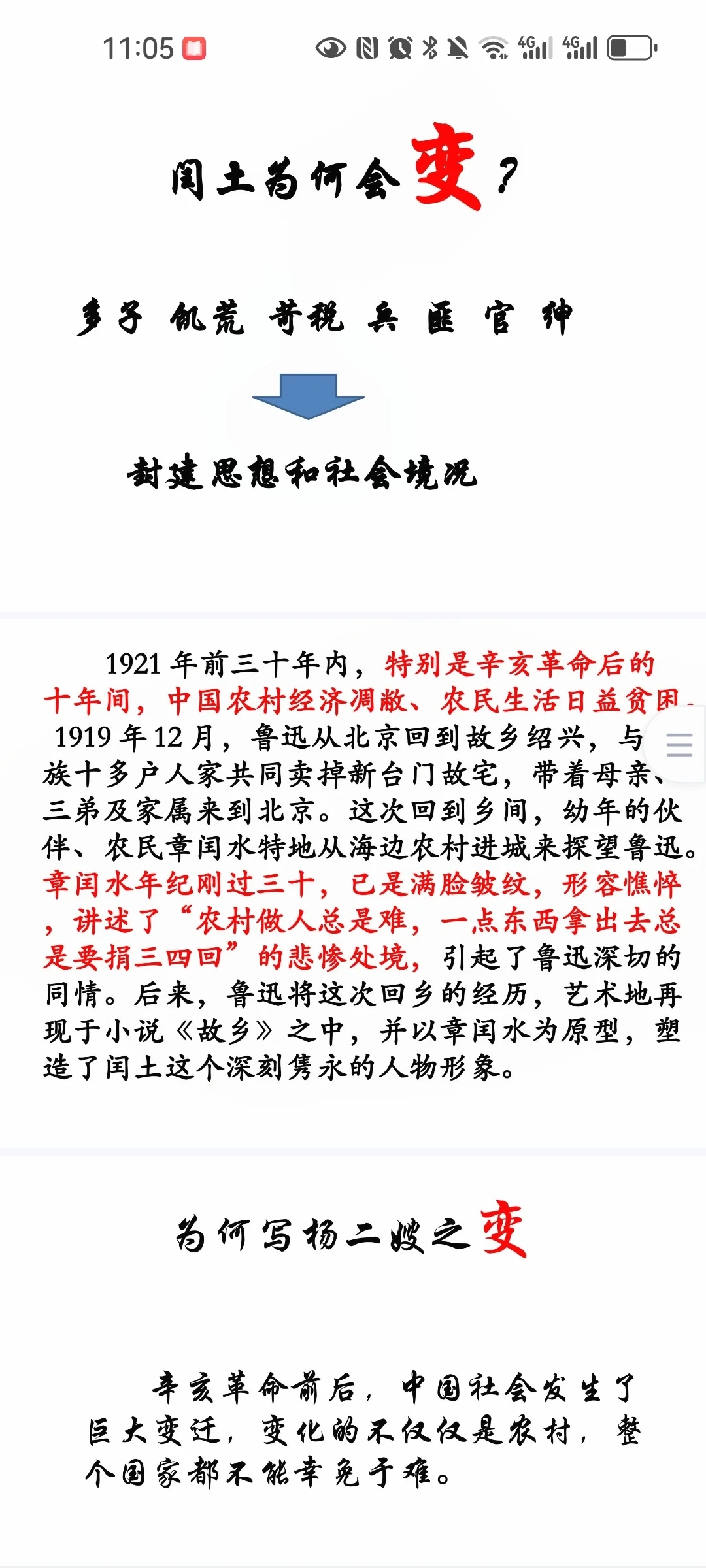 本课为第二课时,第一课时主要梳理文章脉络,理清环境变化,所以总体课程思路为“环境之变、杨二嫂之变、润土之变,我想改变”我们一起来学习吧!