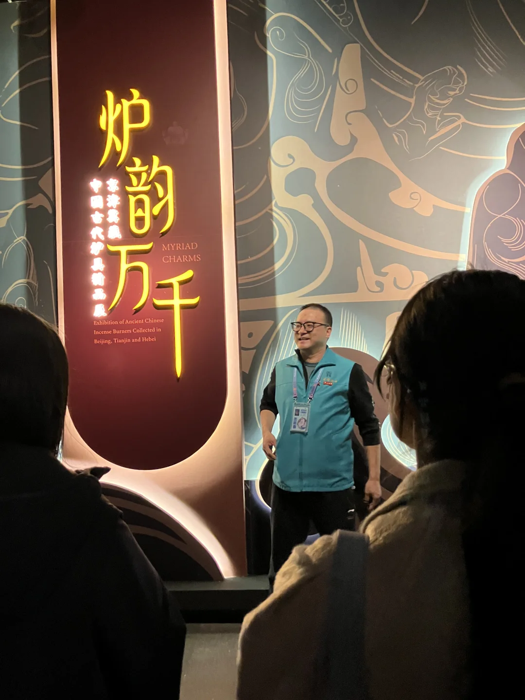 在炉具展厅,他又从冶炼工艺、瓷文化,讲到雍正朝的货币政策如何悄然改变着古人的生活器用。旁征博引,却生动易懂。