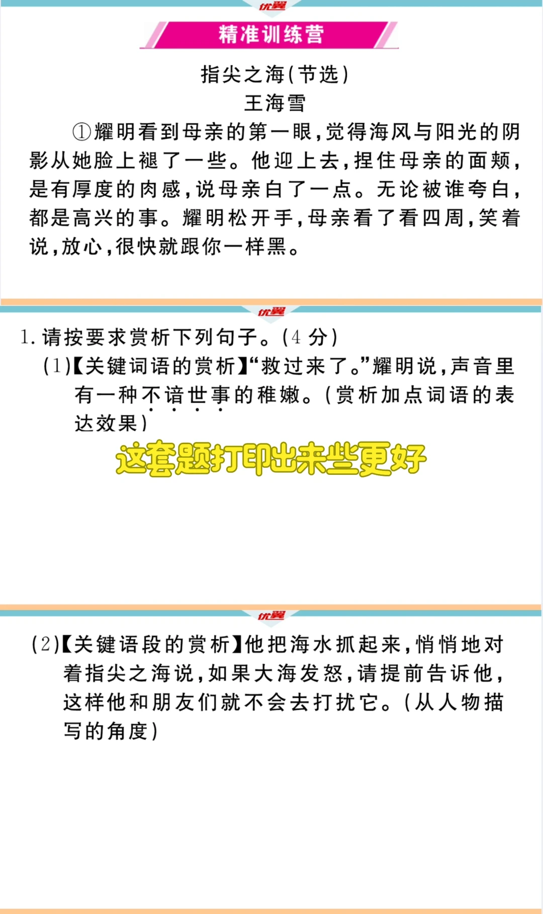 🩵赏析题包括词语赏析,句子赏析,语言特色赏析