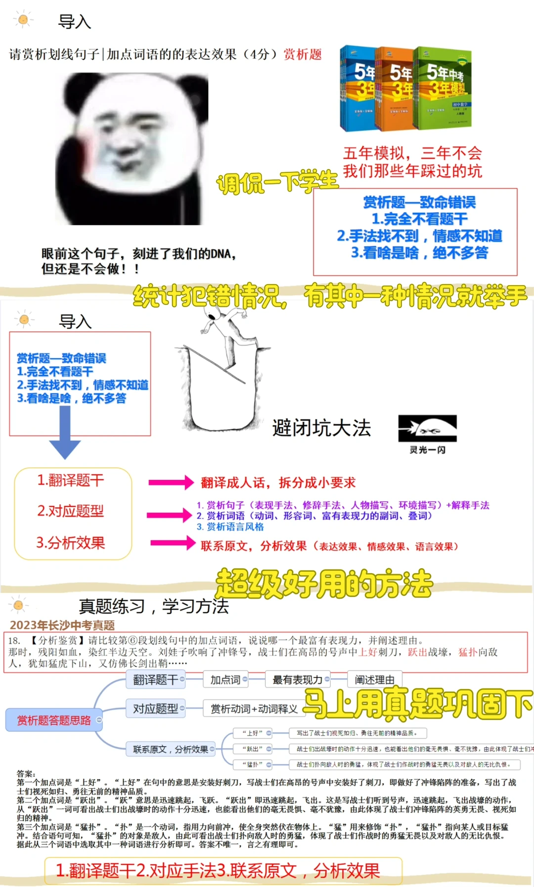 🩵赏析题常犯错误:不看题干(赏析词语却赏析了整个句子),找不到手法和情感,答题内容少(不会联系原文)