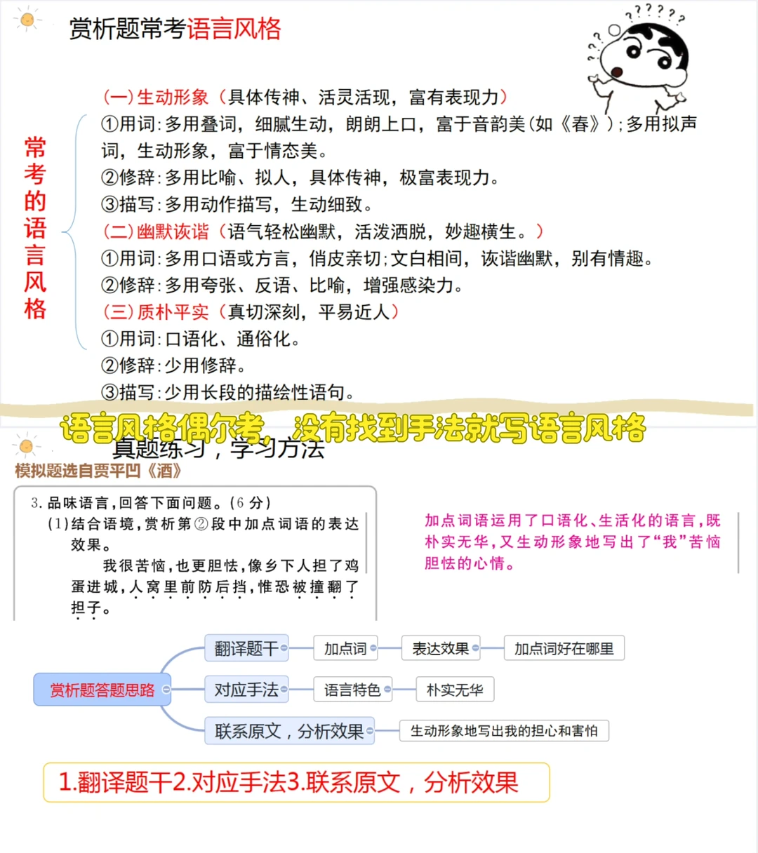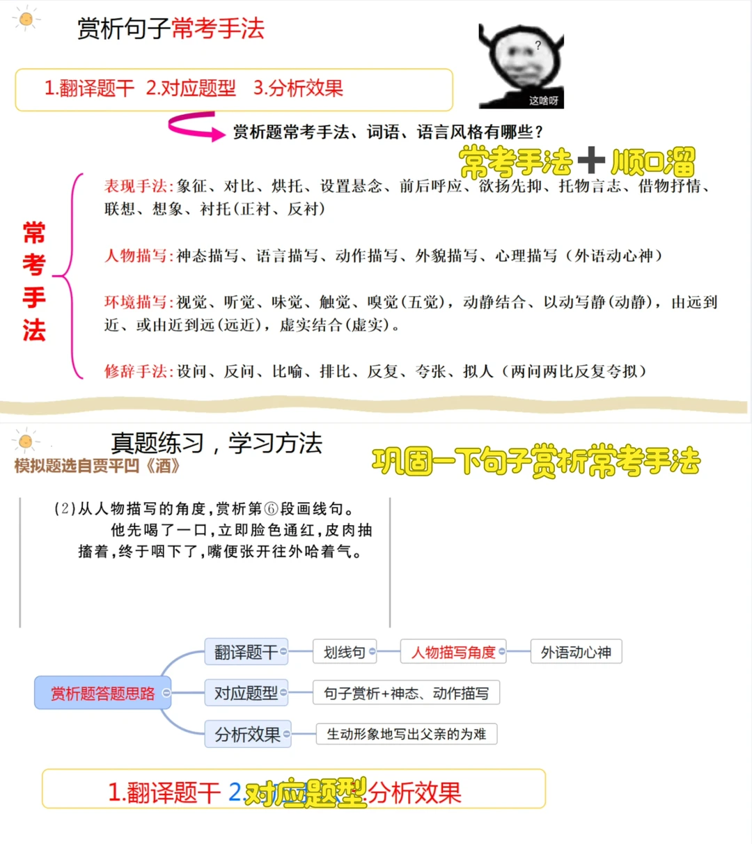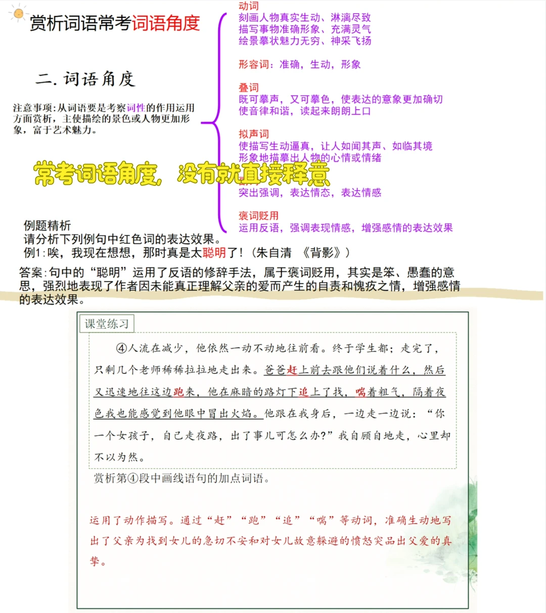 🩵整合常考的赏析题手法,词语,语言风格并练习巩固