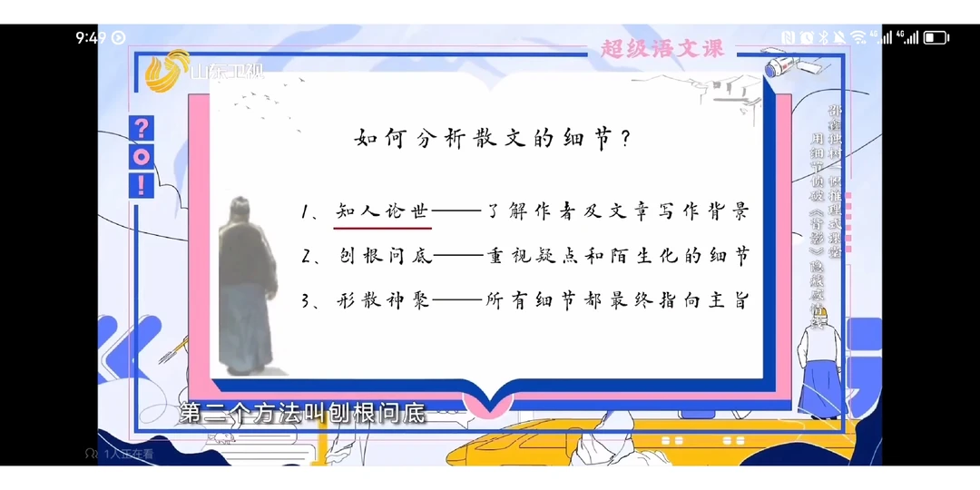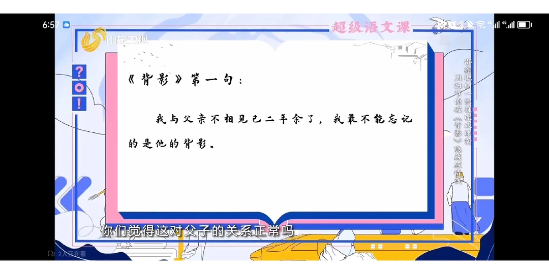本课由文本解读深刻的邵鑫老师执教,用崭新的思路打开《背影》,创设一个破案的情境,而这个情境其实也是一种文本解读方式,阅读散文的方法,邵老师用个人强大的阐释能力,深入浅出地带着学生读出父与子的和解。一、谈话导入