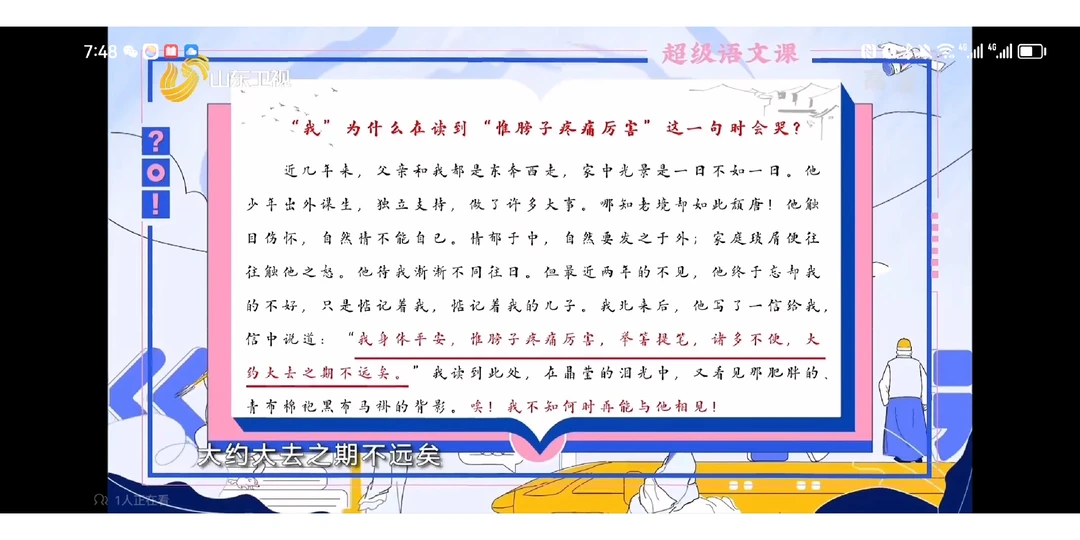 屏显:我与父亲不想见已二年余了,我最不能忘记的是他的背影。