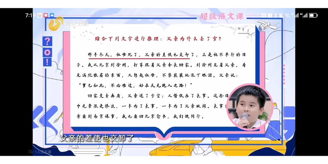 4.现在我们来破案,解开朱自清父亲被撤职之谜,结合文字进行推理,父亲为什么丢了官?(屏显二三自然段,指名学生朗读)