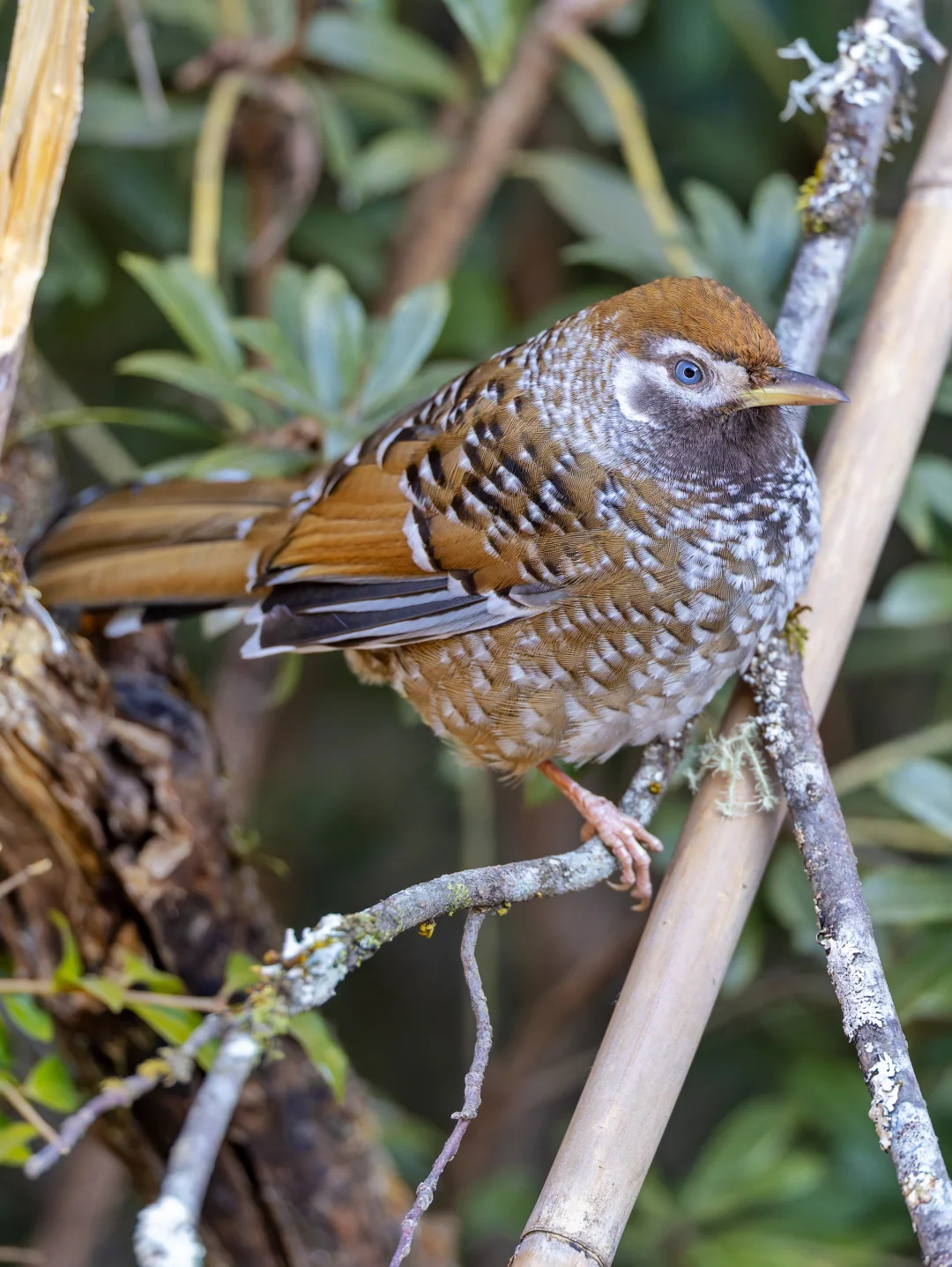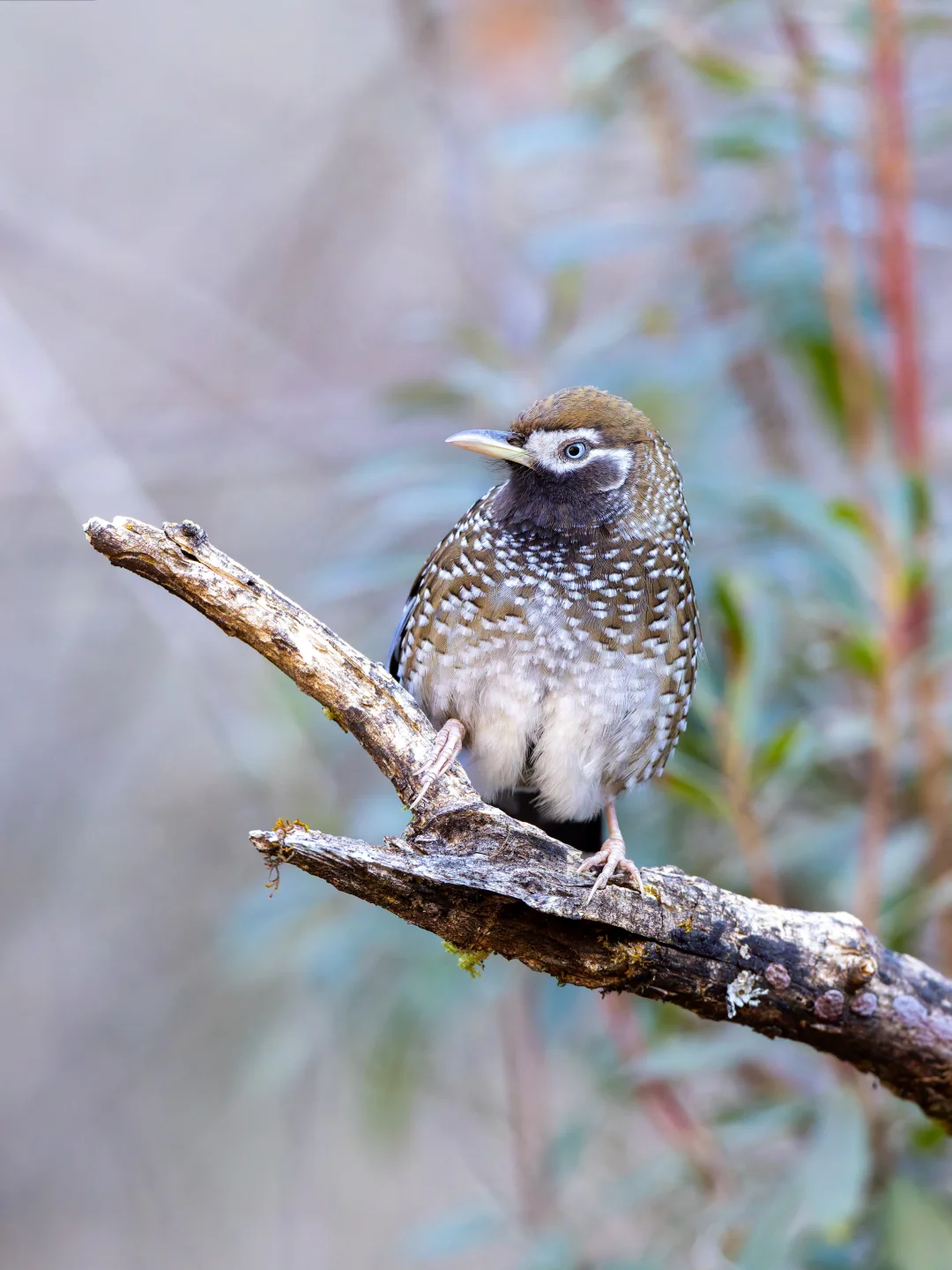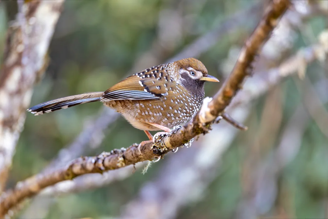 白点噪鹛,White-speckled Laughingthrush,雀形目噪鹛科Ianthocincla属。也叫 白点鹛,中国特有种,国家一级保护动物,分布在云南和四川西部的高海拔山区,不过栖息地严重丧失,目前丽江老君山还有比较稳定的种群。由于它们垂直迁徙,冬季能在最低海拔2500米左右看到它们。