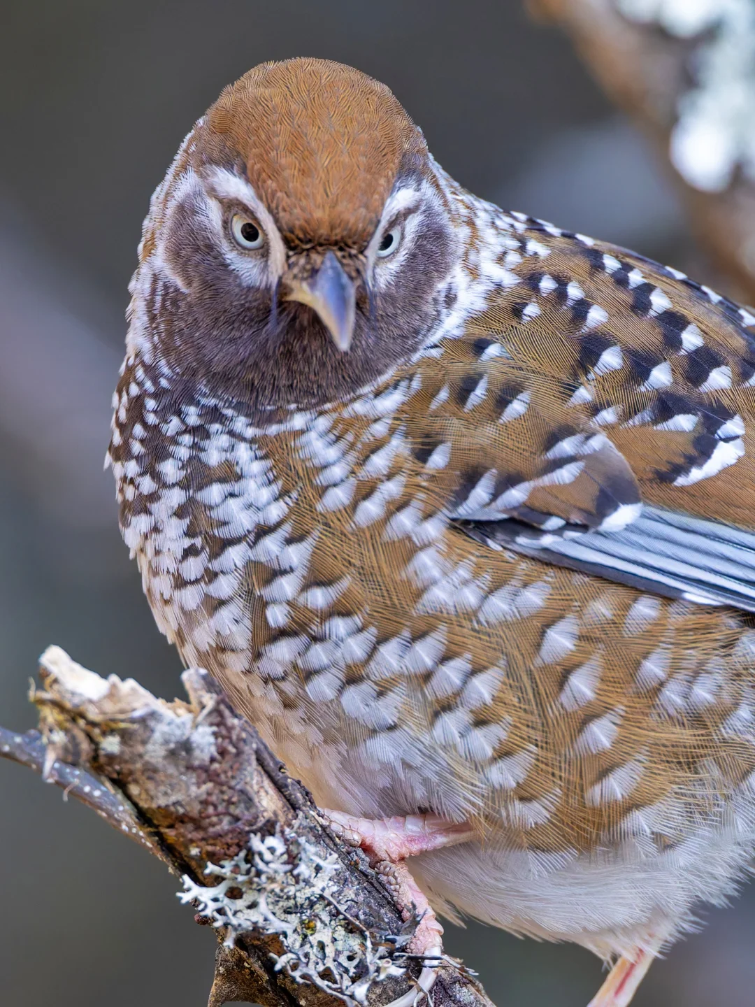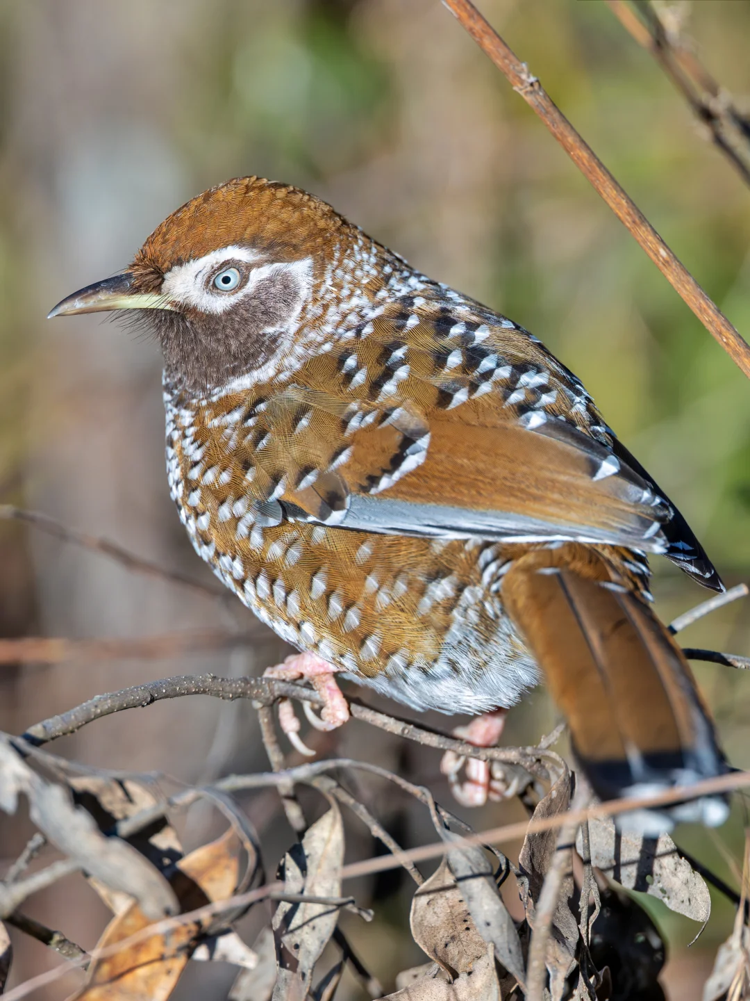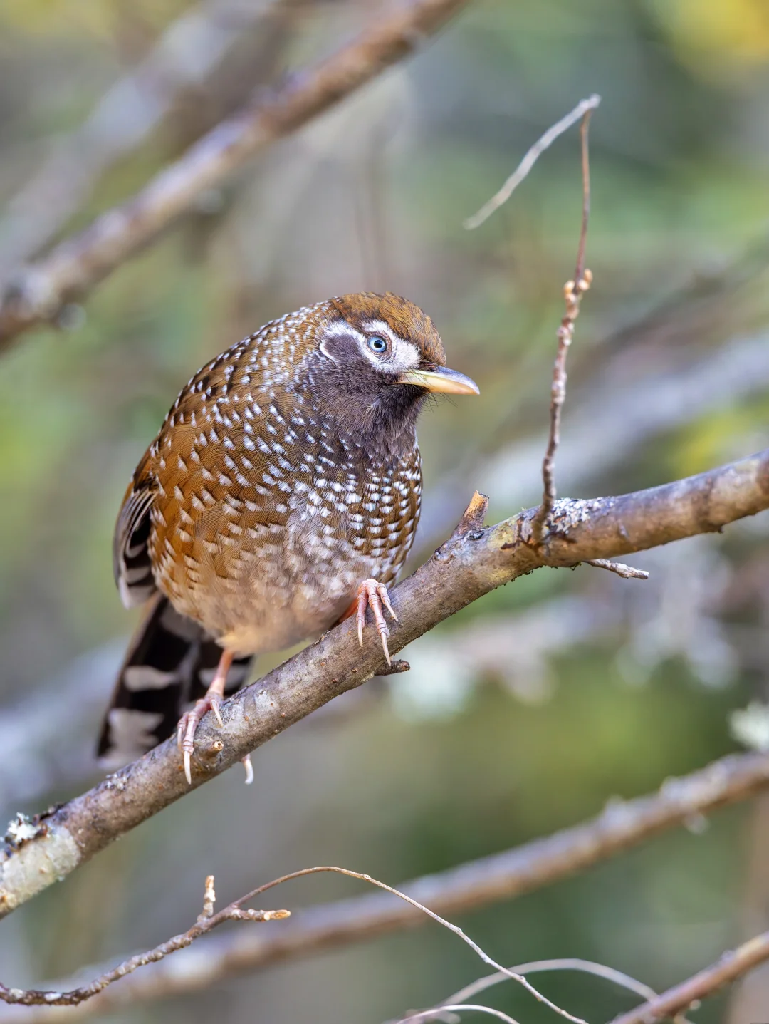 白点噪鹛,White-speckled Laughingthrush,雀形目噪鹛科Ianthocincla属。也叫 白点鹛,中国特有种,国家一级保护动物,分布在云南和四川西部的高海拔山区,不过栖息地严重丧失,目前丽江老君山还有比较稳定的种群。由于它们垂直迁徙,冬季能在最低海拔2500米左右看到它们。