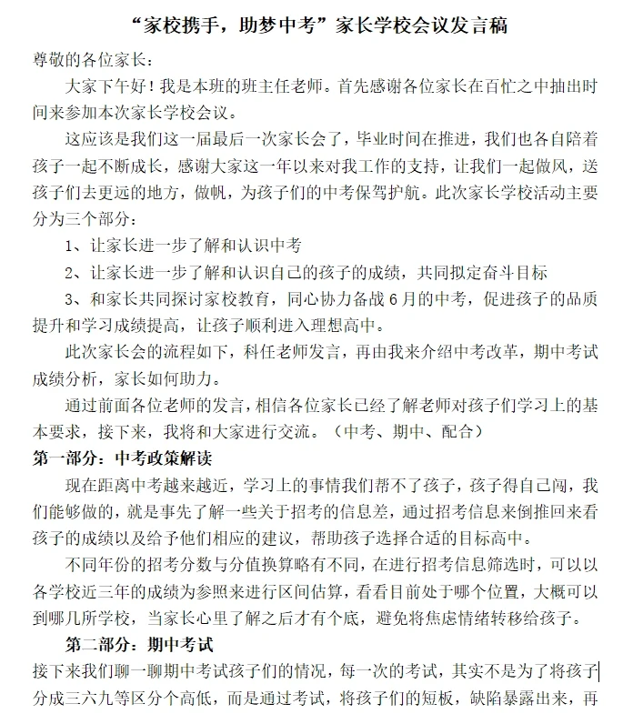 还有两个月中考,这个时候开家长会,说什么都好像太晚了,那就说些切实际的东西➕爱的魔法吧