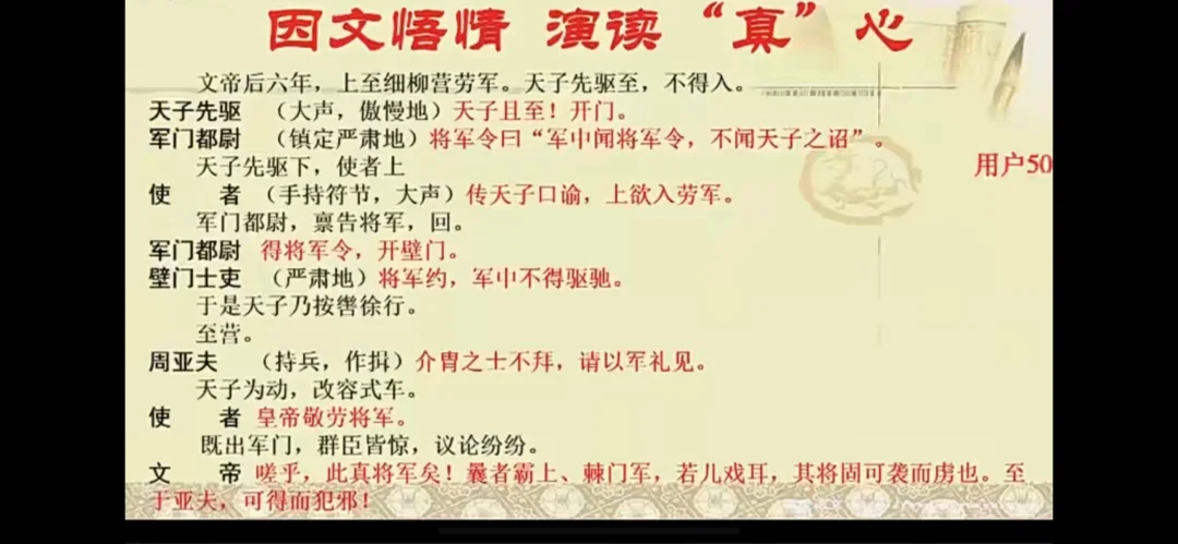 一位随行的大臣听了文帝的夸赞有些疑惑,于是问文帝:陛下称亚夫为“真将军”,何为“真”?