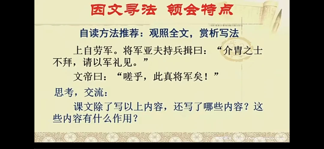 1.极简版本的《周亚夫军细柳》只有30多个字,与原文相比,你有什么疑惑?