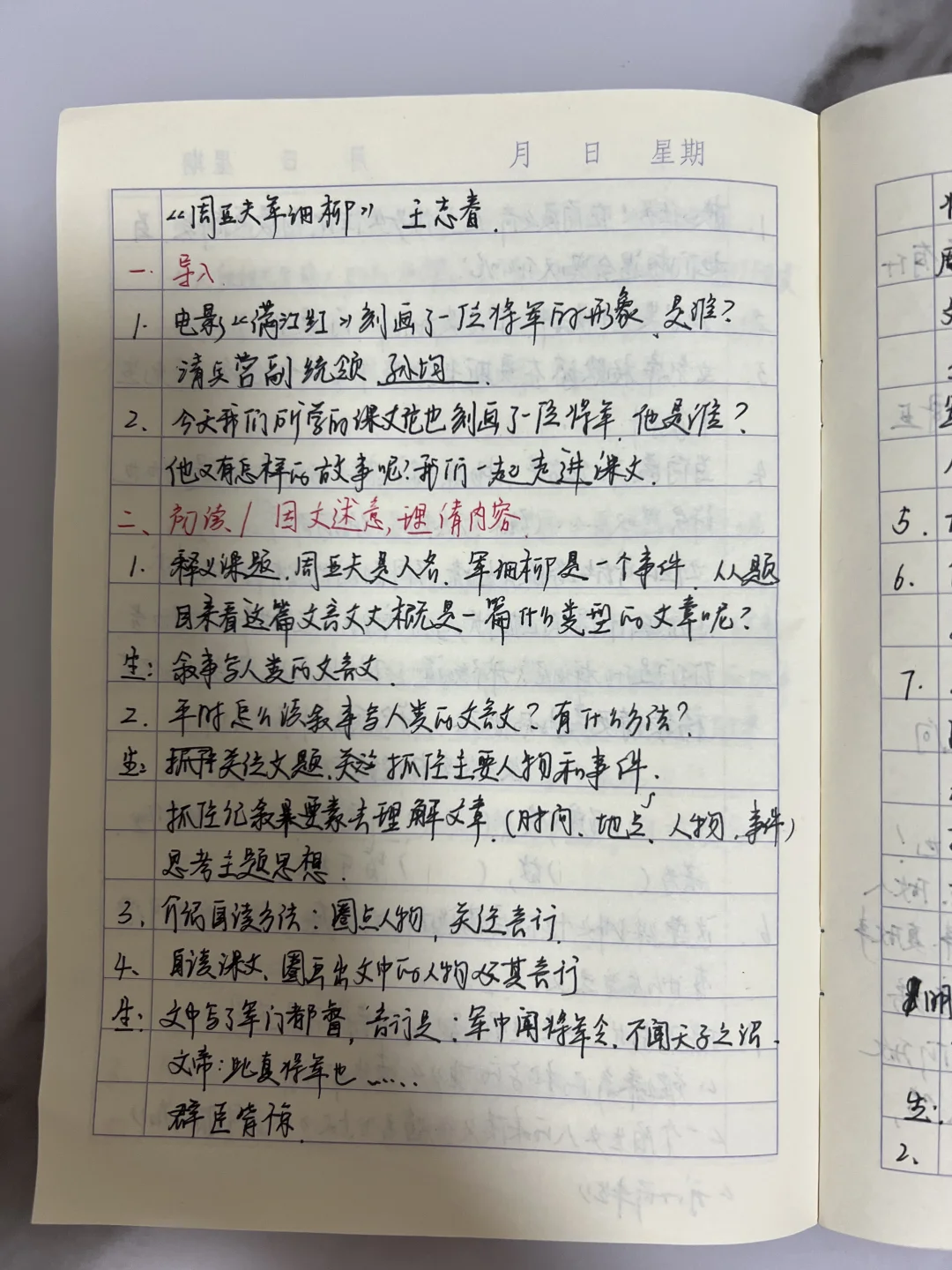 生:文章主要描写周亚夫,为何还要写其他人物的言行?