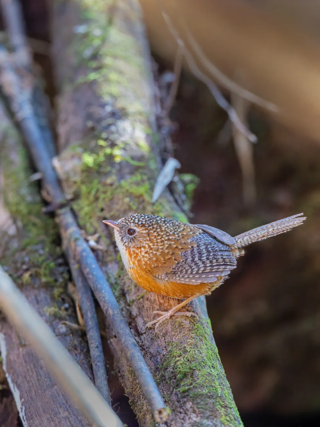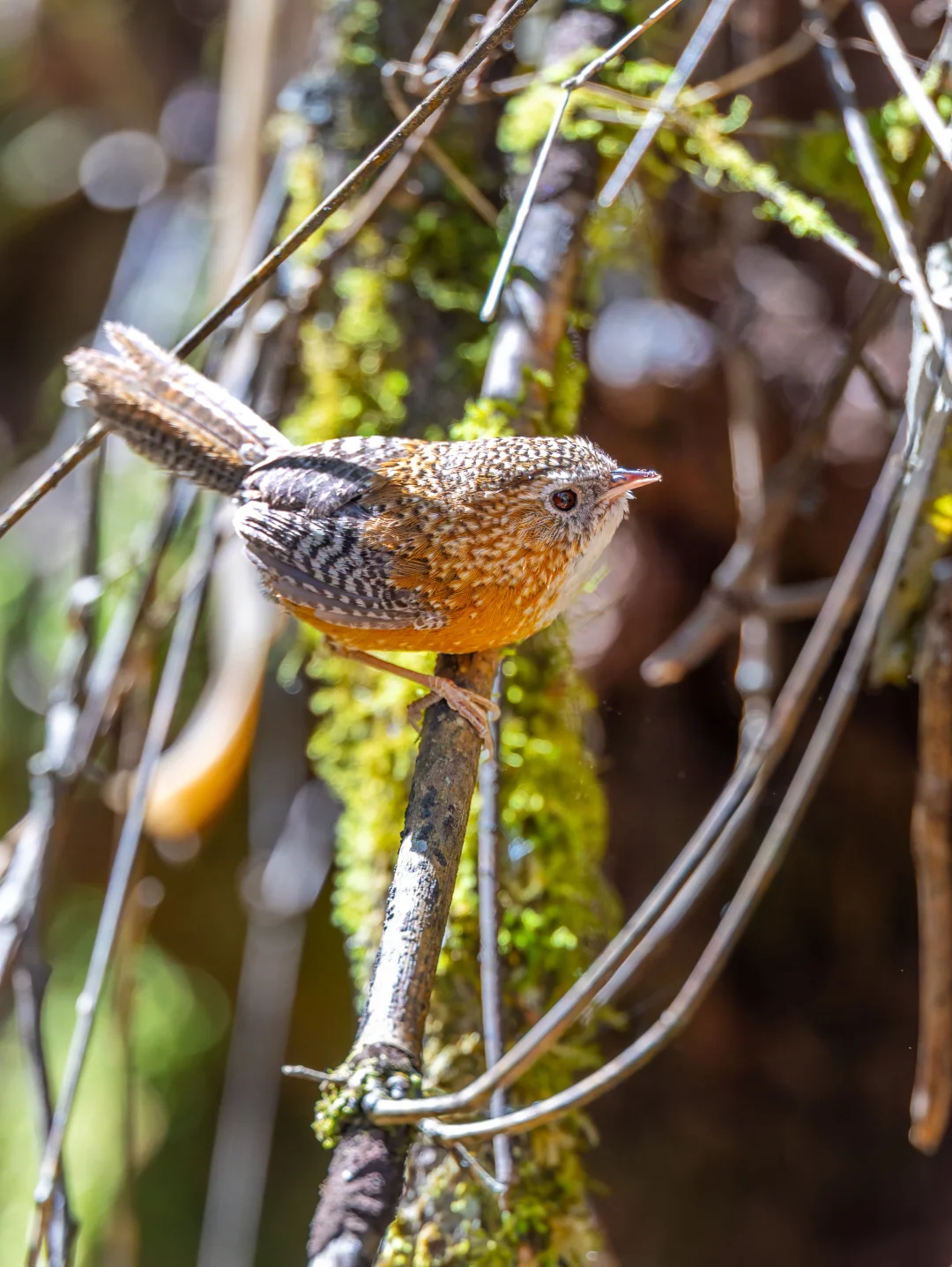 斑翅鹩鹛,Bar-winged Wren-Babbler,雀形目鹛科鹩鹛属。它们主要栖息在海拔1500至3600米之间的山区森林下层,习性隐秘,分布较为罕见且局限于某些区域,通常不会轻易被发现。