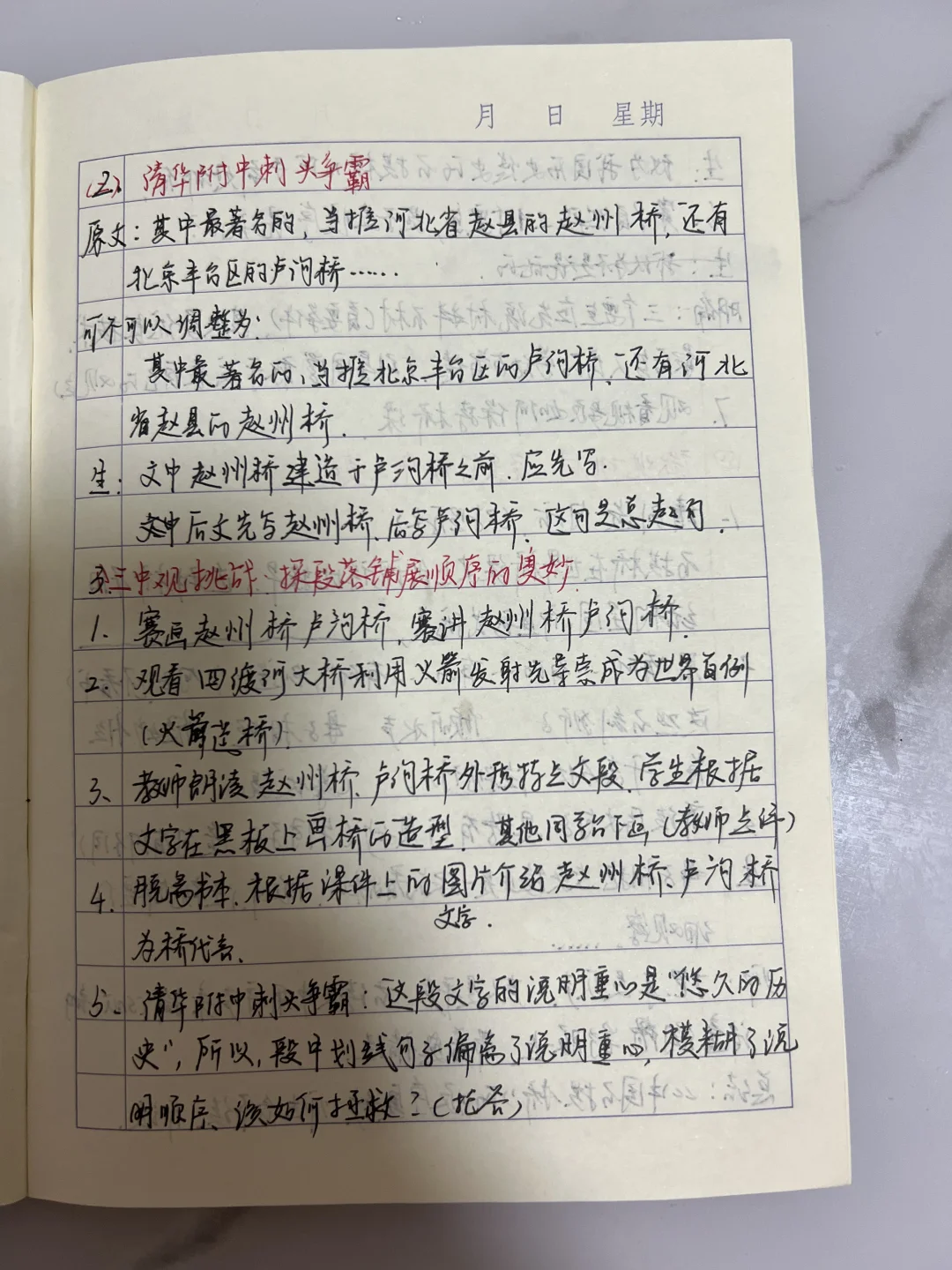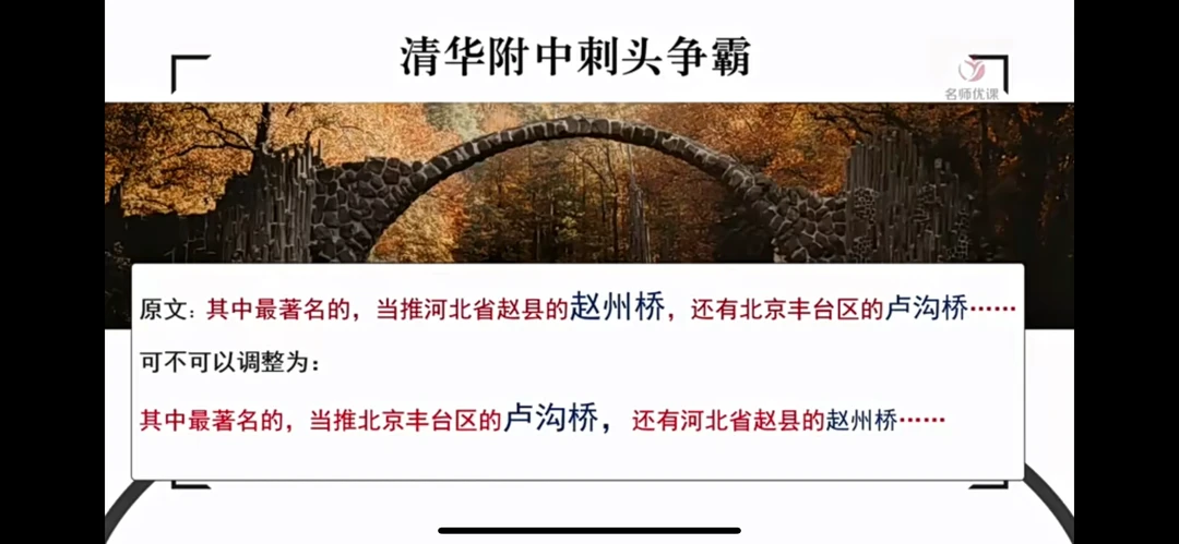 生:文中赵州桥建造与卢沟桥之前,应先写