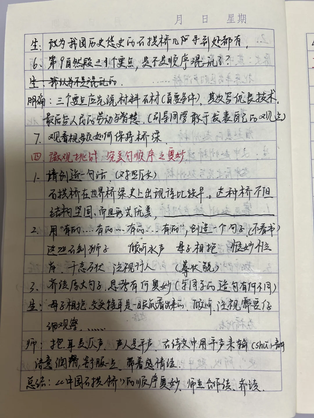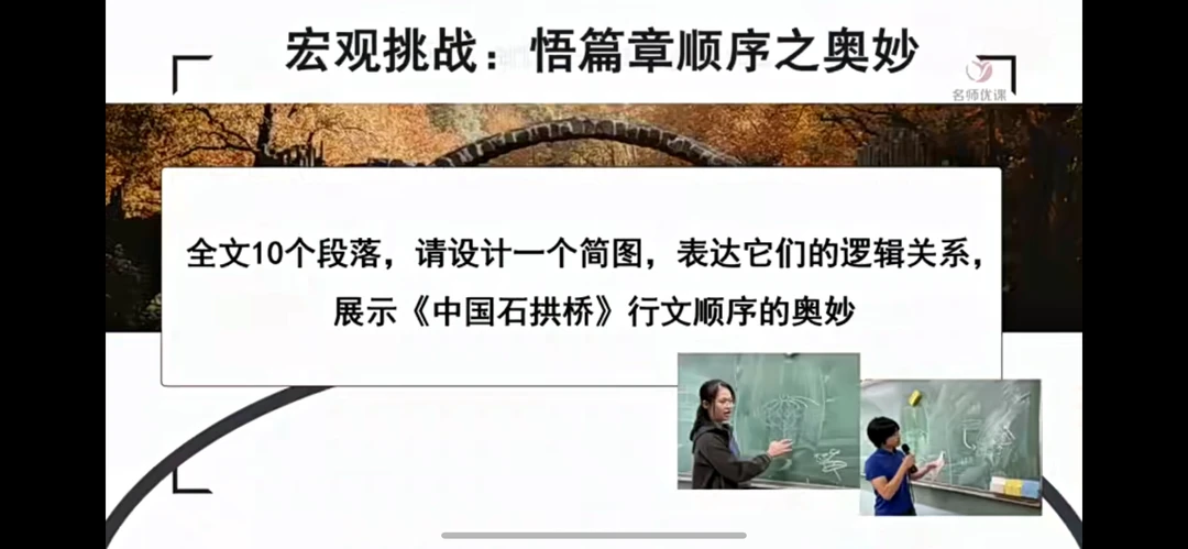 总结:《中国石拱桥》的顺序奥妙,师生合作读,齐读