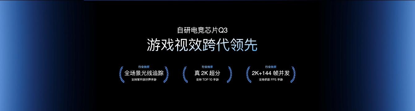 自研电竞芯片 Q3 现已适配 180+ 款 PC 级游戏超分、180+ 款 PC 级游戏超帧和 7 款头部游戏超分超帧,并携手 10大 Top 级游戏迈入真 2K 视效时代、联袂 4 大顶流 FPS 游戏带来领先枪战体验,并成功落地全场景自研光线追踪技术。iQOO是行业中迄今为止游戏内置超分超帧数量上更为领先的厂商。