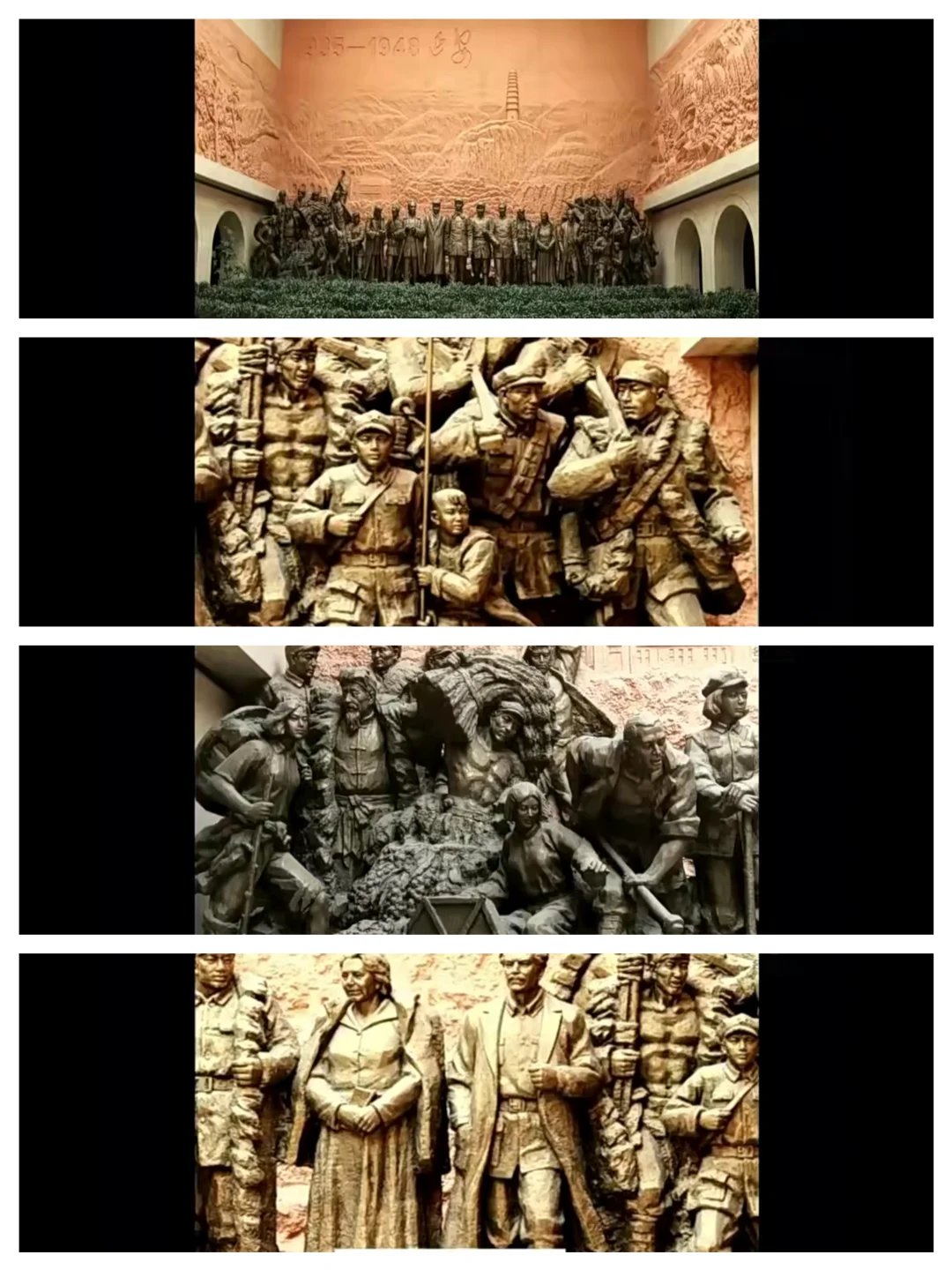 2.展示真实陈列馆的塑像的图片,思考为什么把白求恩和史沫特莱放在中间位置?