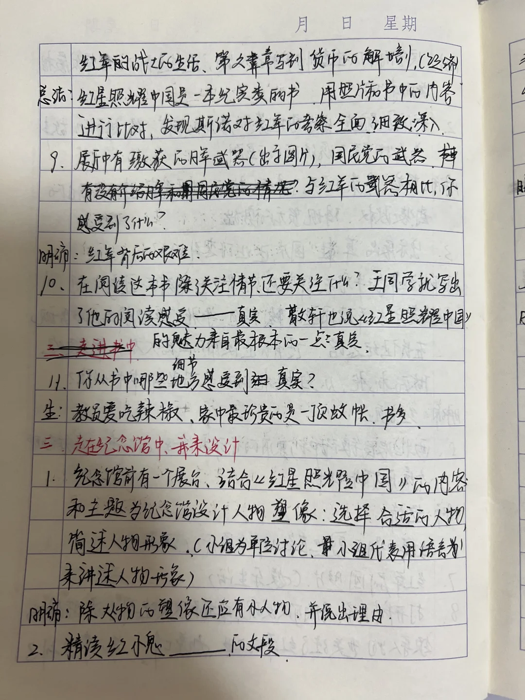 1.结合《红星照耀中国》的内容和主题为纪念馆设计人物塑像:选择合适的人物,简述人物形象(小组讨论,代表发言)