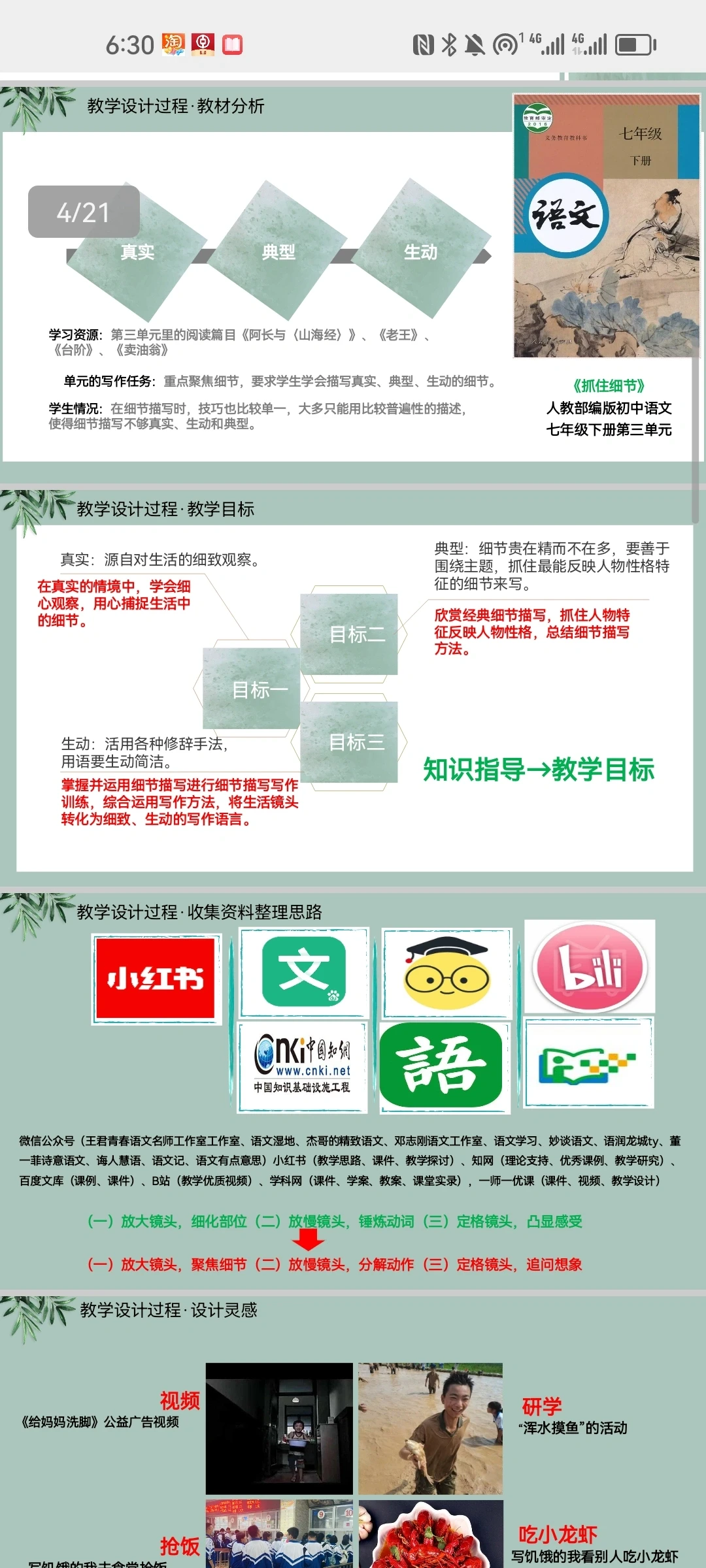 2⃣教学设计过程:教材分析、教学目标、资料收集、设计灵感(这个过程有点像说课)